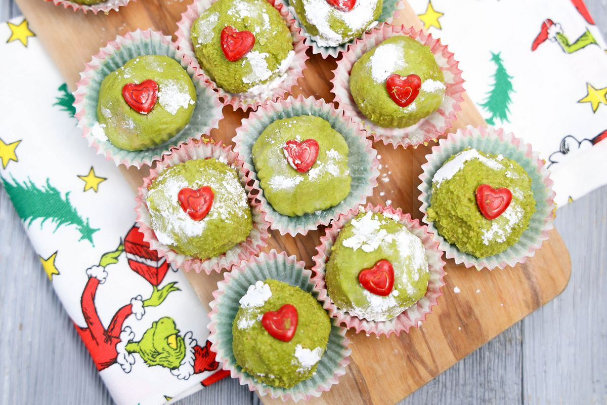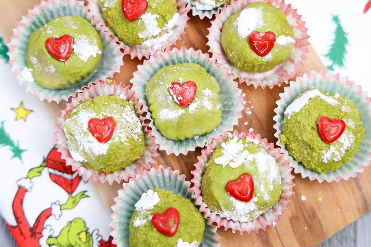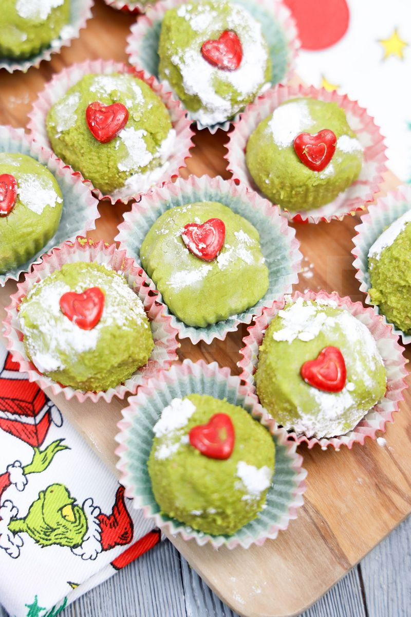 Grinch Peanut Butter Snowballs is made with peanut butter, graham crackers, butter, green food gel, red sprinkle hearts, and powdered sugar. This is a semi exclusive recipe. The Grinch Peanut Butter Snowballs comes on a cutting board with gray wood backdrop. Set comes with 14 in process (in process are the same for all sets) and 18 final shots (finals are different for each set) along with recipe in text format. Both vertical and horizontal shots are available for social media. One set of four. Sample removed on finals.