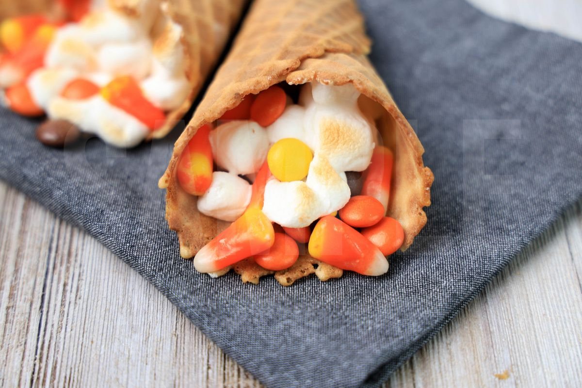 Halloween Campfire Cones is made with Reese’s, marshmallows, and candy corn. This is a semi exclusive recipe. The Halloween Campfire Cones comes a denim napkin on a rustic wood backdrop. Set comes with 6 in process (in process are the same for all sets) and 19 final shots (finals are different for each set) along with recipe in text format. Both vertical and horizontal shots are available for social media. One set of four. Sample removed on finals.