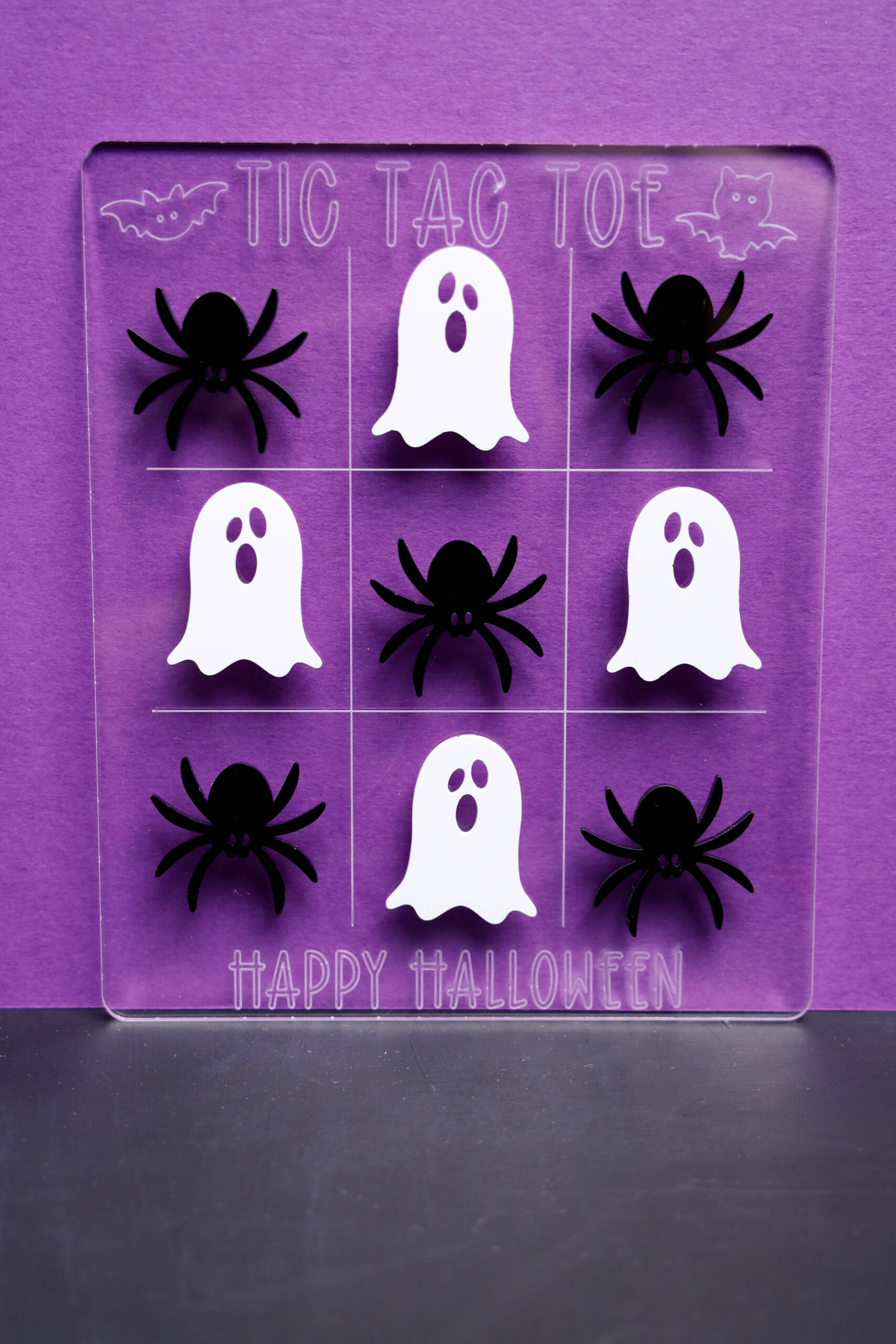 Halloween Tic Tac Toe Exclusive made with acrylic and P2S. This is a exclusive craft. The Halloween Tic Tac Toe Exclusive on a black wood backdrop. Set comes with 9 in process and 9final shots along with tutorial in text format, svg, and videos already sent. Both vertical and horizontal shots are available for social media. Sample removed on finals.