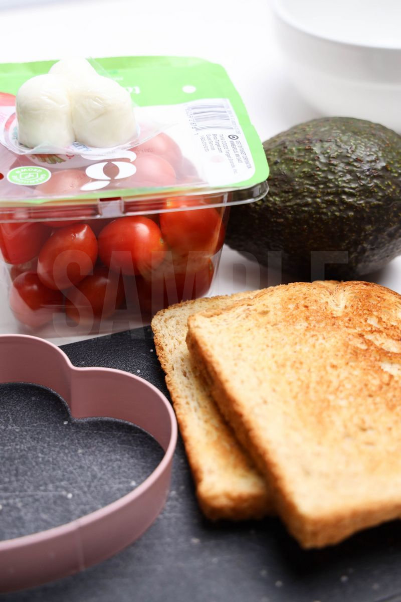 Heart Avocado Toast is made with avocado, toast, mozzarella cheese, and tomatoes. This is a semi exclusive recipe. The Heart Avocado Toast comes on a wood board with a gray wood backdrop. Set comes with 10 in process (in process are the same for all sets) and 15 final shots (finals are different for each set) along with recipe in text format. Both vertical and horizontal shots are available for social media. One set of four. Sample removed on finals.