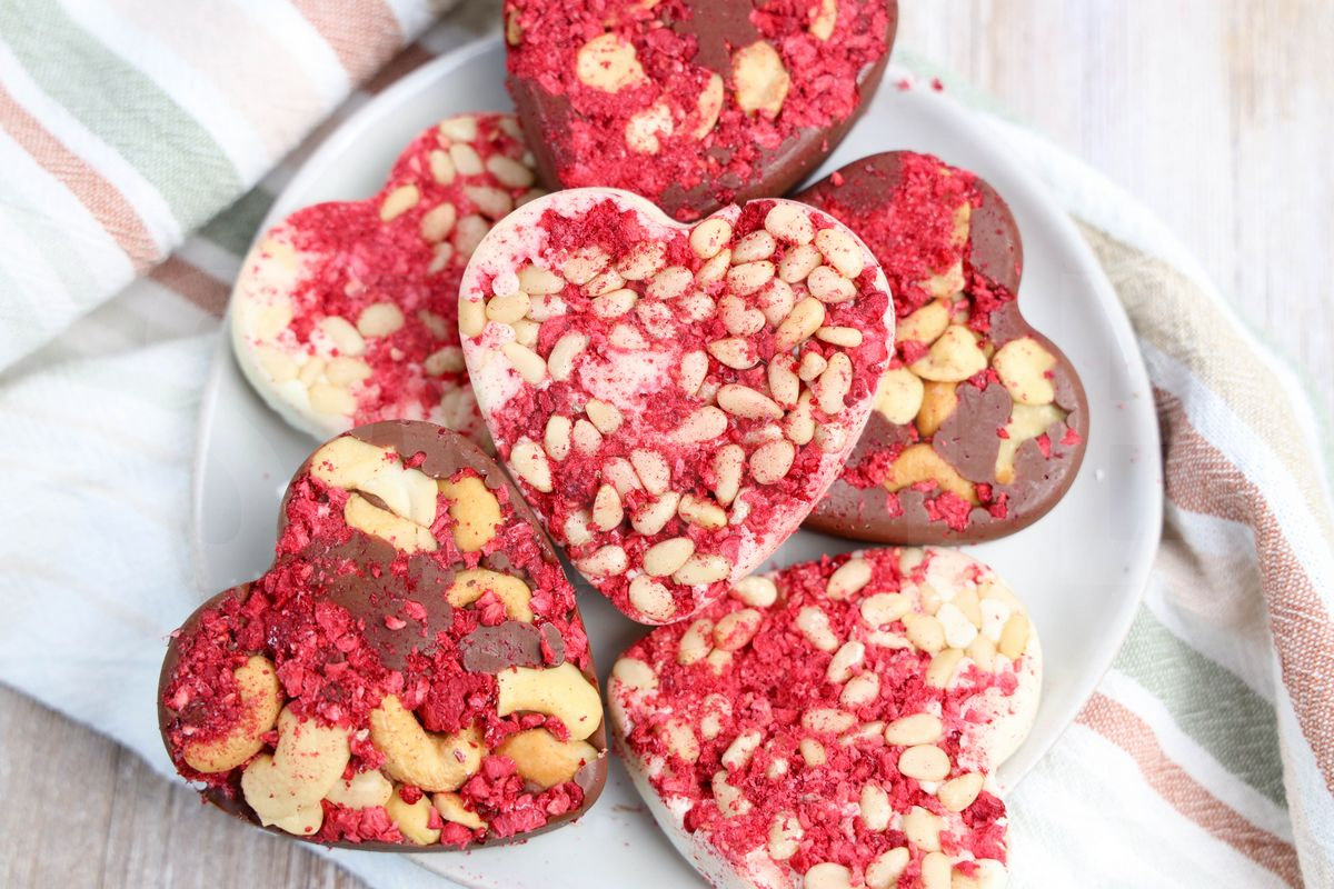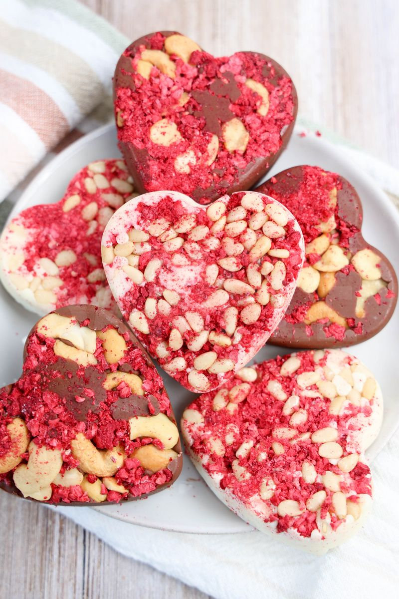 Heart Raspberry Nut Chocolates is made with dried raspberries, Ghirardelli’s white and milk chocolate, and nuts. This is a semi exclusive recipe. The Heart Raspberry Nut Chocolates comes on a white plate with a white and light rainbow cloth on a rustic wood backdrop. Set comes with 8 in process (in process are the same for all sets) and 15 final shots (finals are different for each set) along with recipe in text format. Both vertical and horizontal shots are available for social media. One set of four. Sample removed on finals.