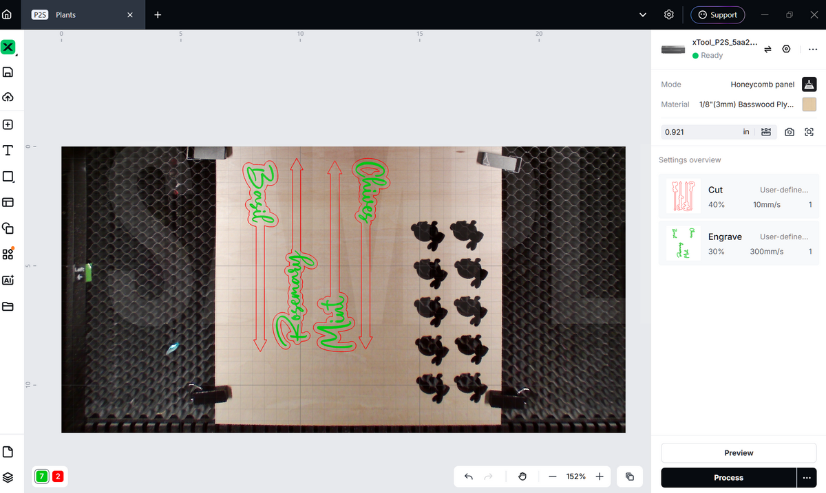 Herb Sticks is made with wood and XTool P2S. This is a semi exclusive craft. The Herb Sticks comes on a white wood backdrop. Set comes with 6 in process and 13 final shots (all in process sets in semi exclusive are the same) along with SVG and tutorial in text format. Both vertical and horizontal shots are available for social media. One set of two. Sample removed on finals.