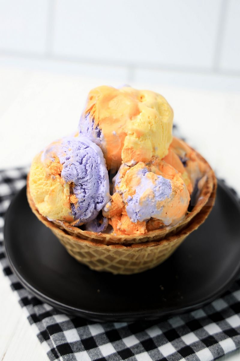 Hocus Pocus Sanderson Sister’s Ice Cream is made with heavy whipping cream, sweetened condensed milk, and food gel dye. This is a semi exclusive recipe. The Hocus Pocus Sanderson Sister’s Ice Cream comes on a black plate with a plaid napkin on a white wood backdrop. Set comes with 10 in process (in process are the same for all sets) and 18 final shots (finals are different for each set) along with recipe in text format. Both vertical and horizontal shots are available for social media. One set of four. Sample removed on finals.