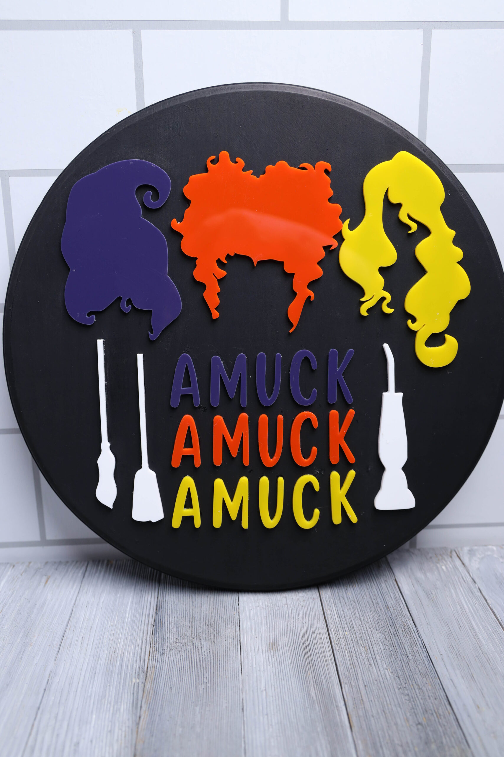 Hocus Pocus Wreath Exclusive made with acrylic and P2S. This is a exclusive craft. The Hocus Pocus Wreath Exclusive on a gray wood backdrop. Set comes with 18 in process and 10 final shots along with tutorial in text format, svg, and videos already sent. Both vertical and horizontal shots are available for social media. Sample removed on finals.