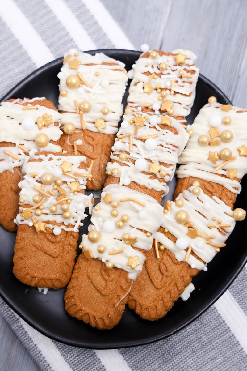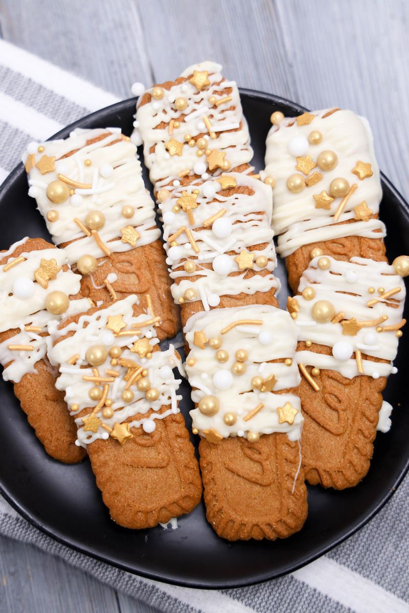 Holiday Biscoff is made with biscoff cookies, cream candy melts, and Christmas gold sprinkle mix. This is a semi exclusive recipe. The Holiday Biscoff comes on a white plate with a gray wood backdrop. Set comes with 10 in process (in process are the same for all sets) and 16 final shots (finals are different for each set) along with recipe in text format. Both vertical and horizontal shots are available for social media. One set of four. Sample removed on finals.