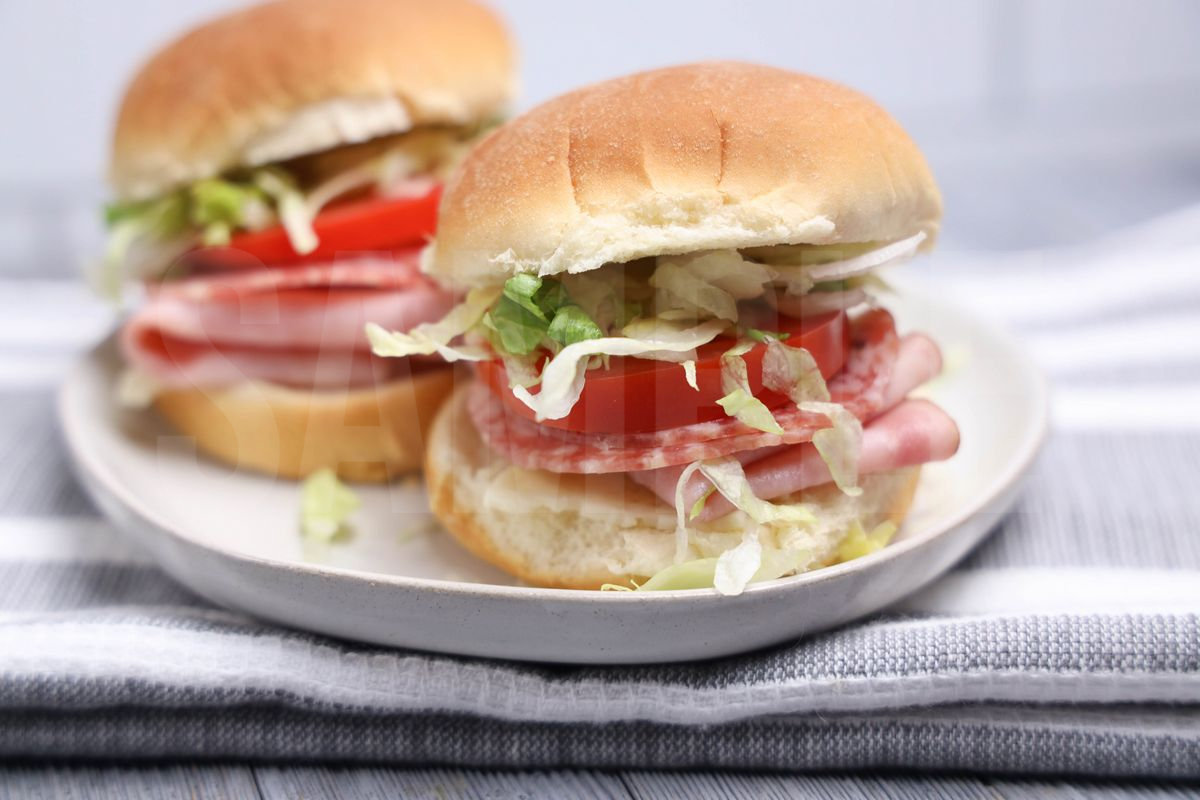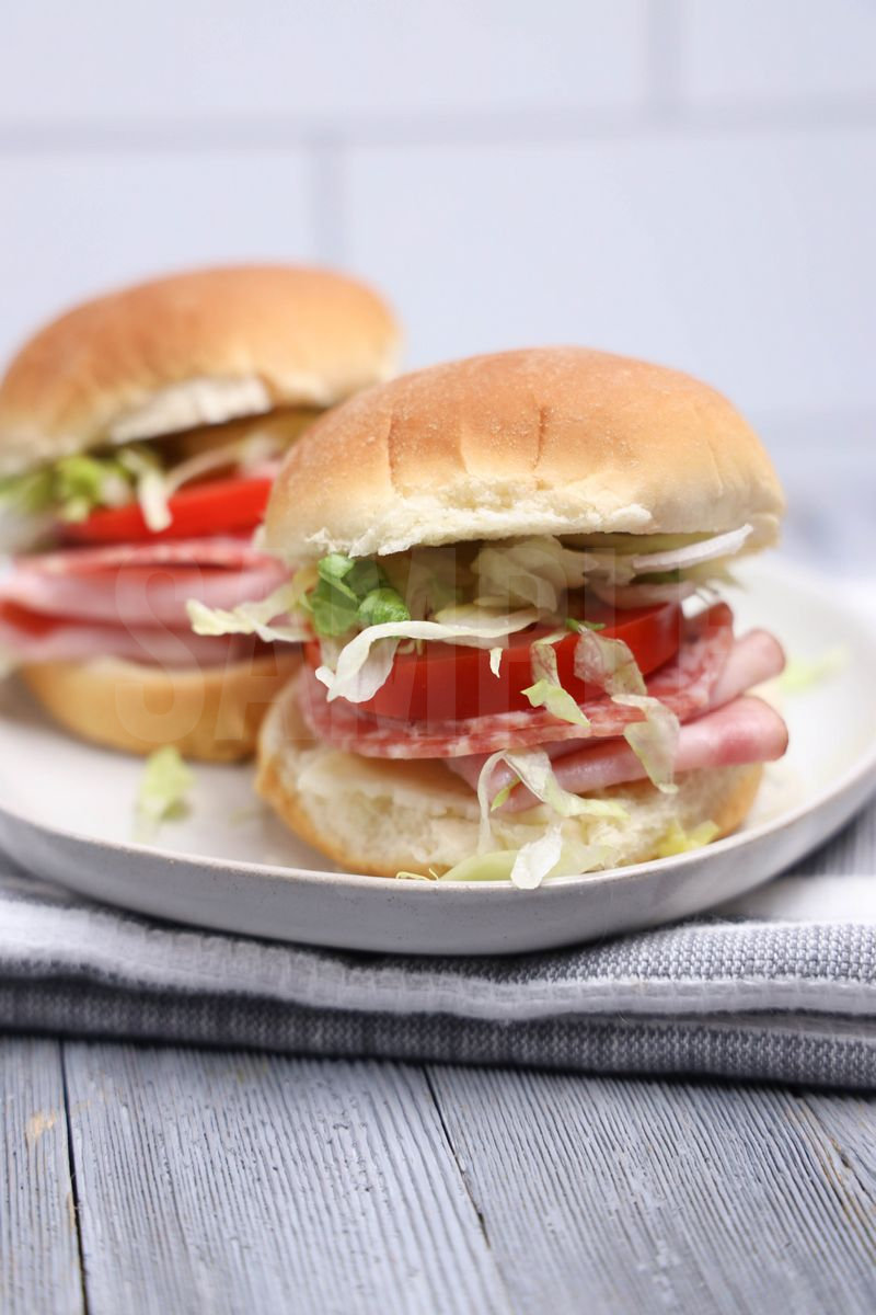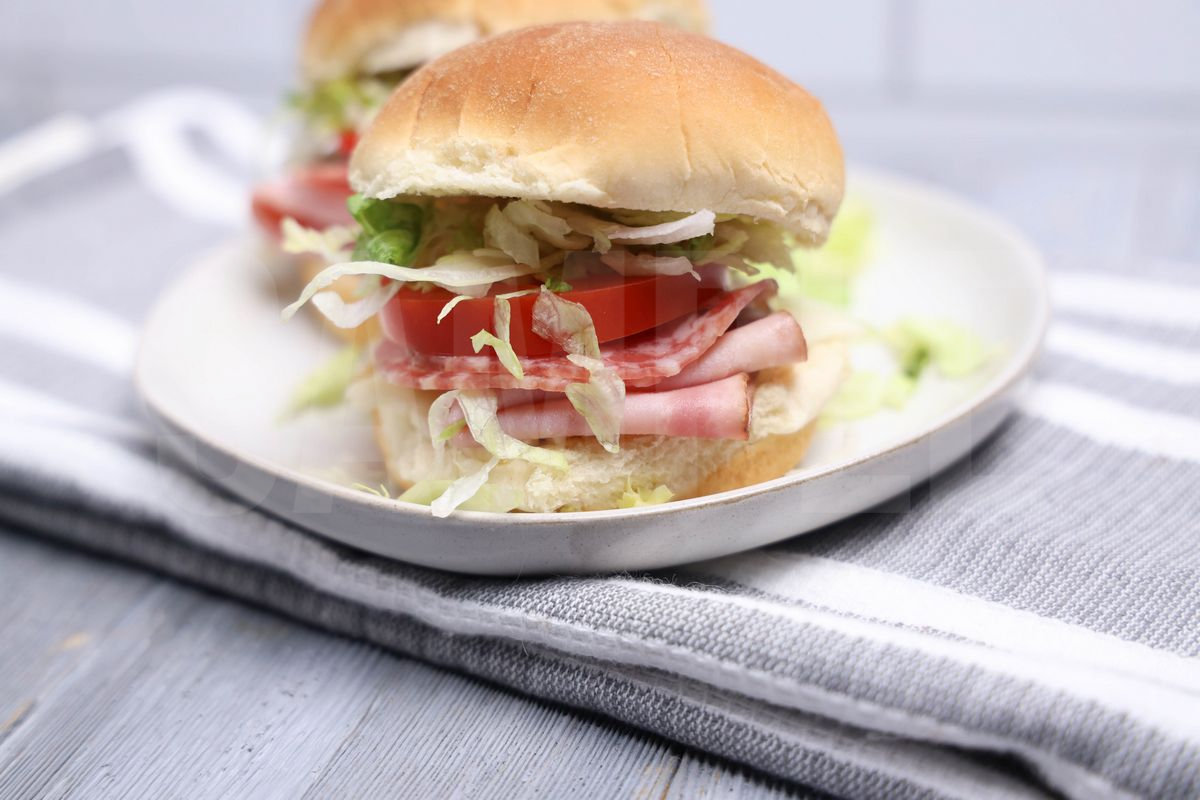 Italian Sliders is made with salami, ham, lettuce, tomato, and cheese. This is a semi exclusive recipe. The Italian Sliders comes on a white plate with a gray wood backdrop. Set comes with 12 in process (in process are the same for all sets) and 15 final shots (finals are different for each set) along with recipe in text format. Both vertical and horizontal shots are available for social media. One set of four. Sample removed on finals.