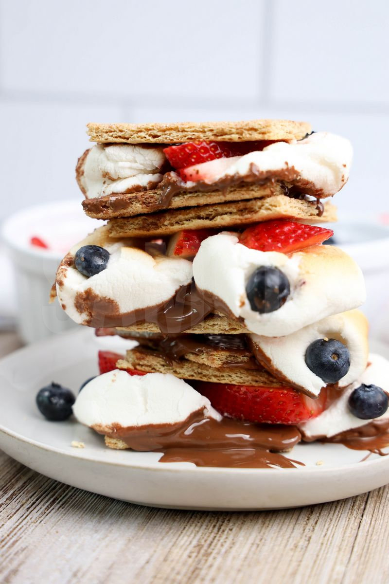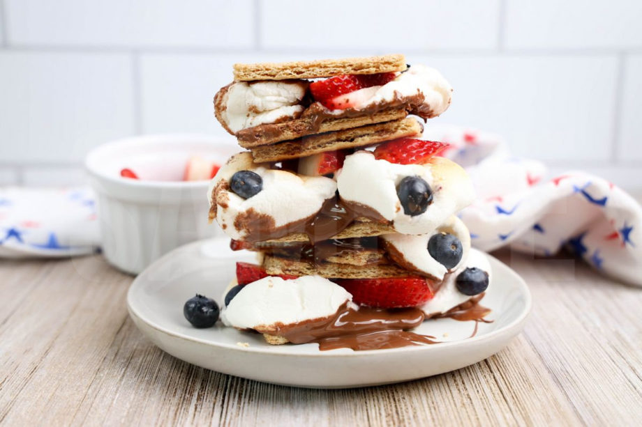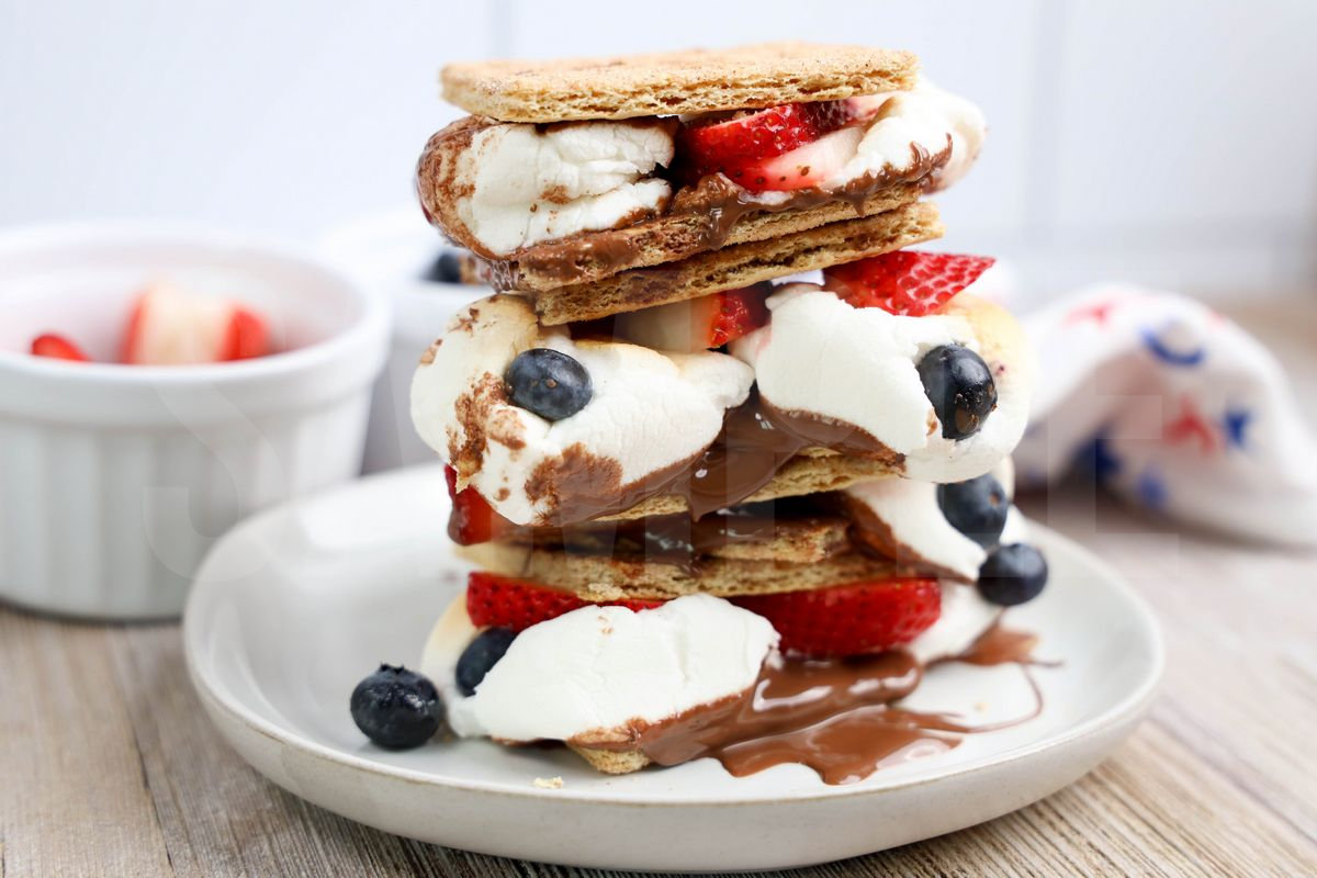 July 4th Berry S’mores is made with blueberries, strawberries, marshmallows, chocolate, and graham crackers. This is a semi exclusive recipe. The July 4th S’mores comes on a white plate with rustic wood backdrop. Set comes with 11 in process (in process are the same for all sets) and 17 final shots (finals are different for each set) along with recipe in text format. Both vertical and horizontal shots are available for social media. One set of four. Sample removed on finals.