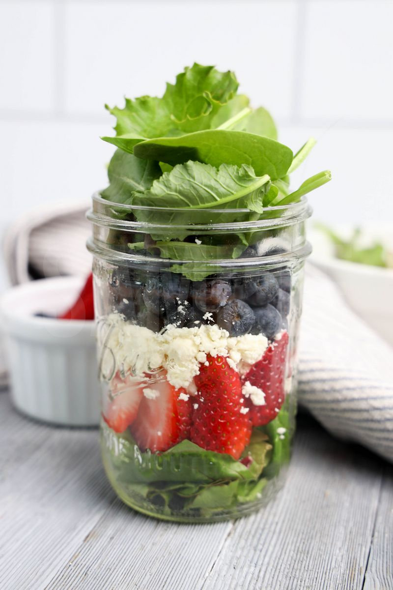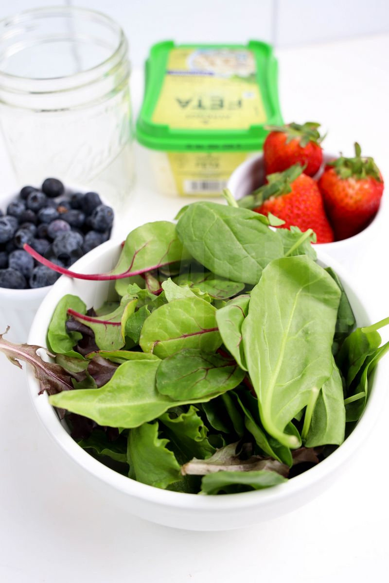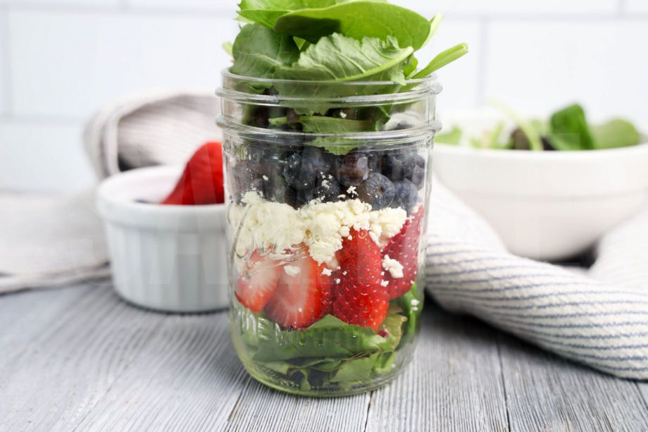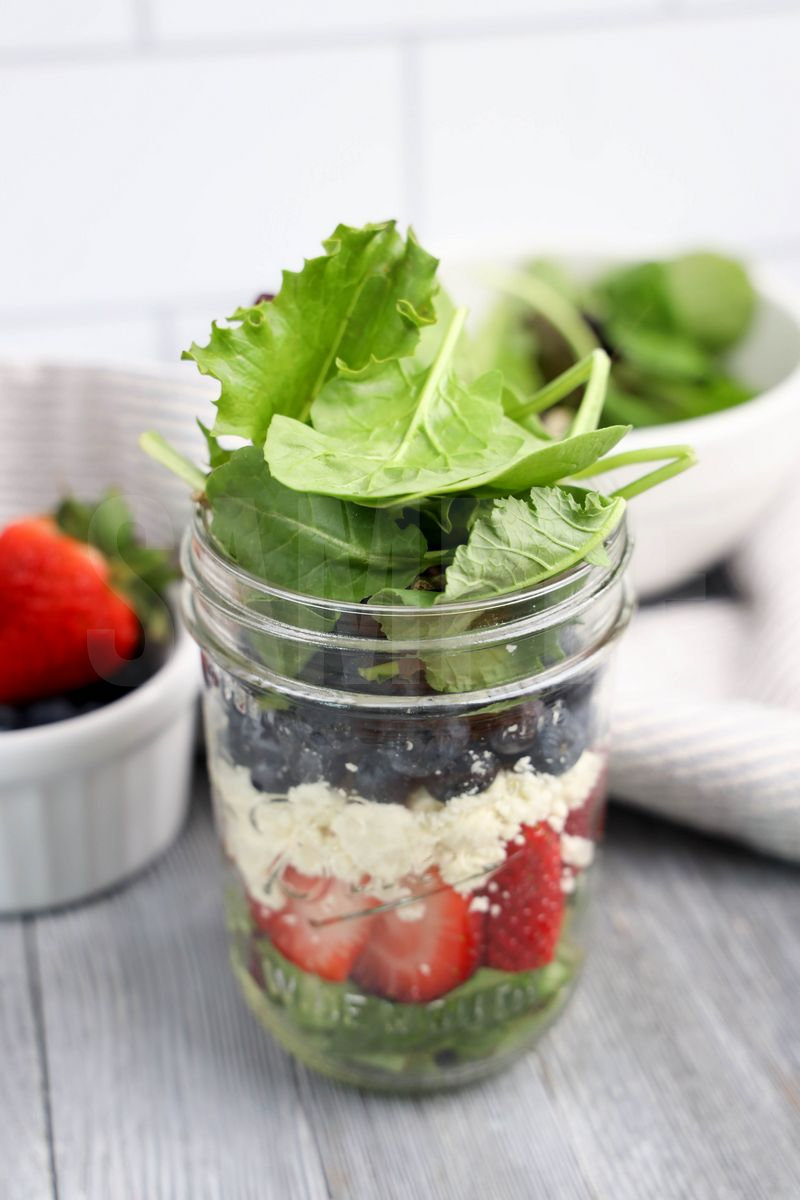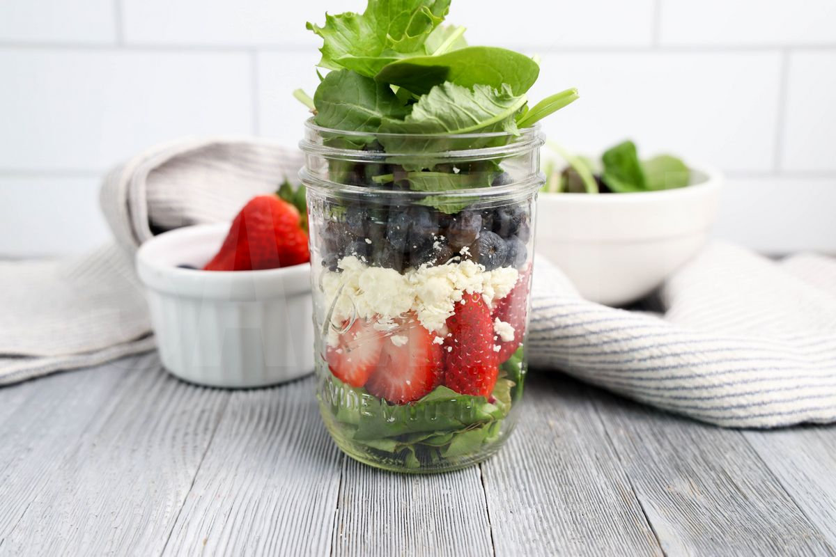 July 4th Mason Jar Salad is made with blueberries, strawberries, spring mix salad, and feta cheese. This is a semi exclusive recipe. The July 4th Mason Jar Salad comes in a clear glass mason jar with gray wood backdrop. Set comes with 16 in process (in process are the same for all sets) and 21 final shots (finals are different for each set) along with recipe in text format. Both vertical and horizontal shots are available for social media. One set of four. Sample removed on finals.