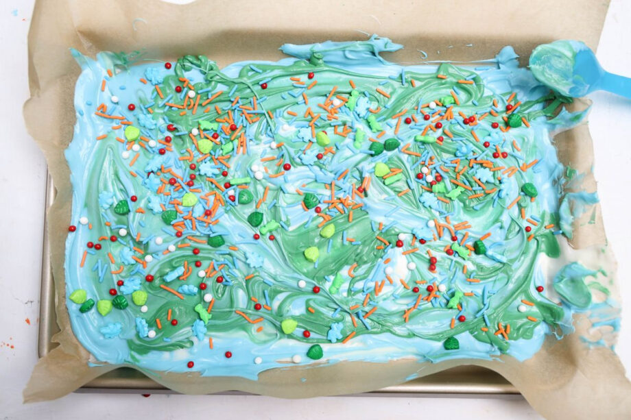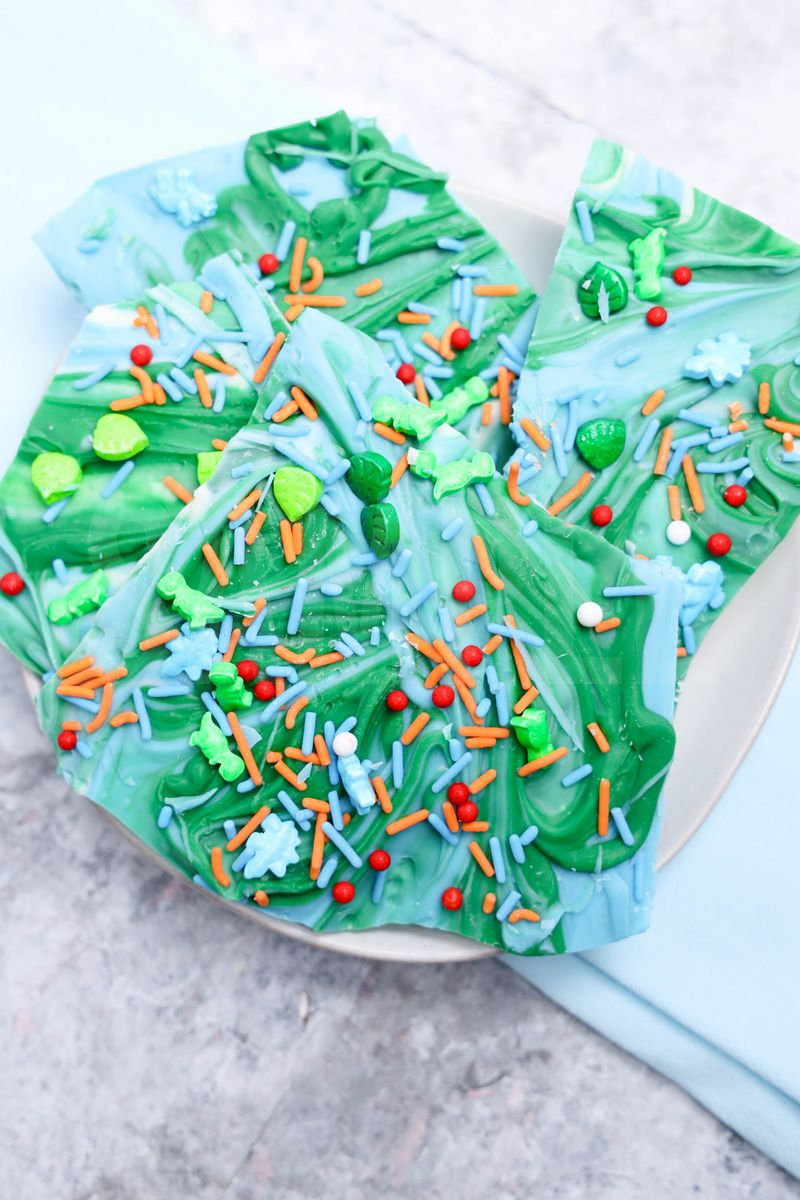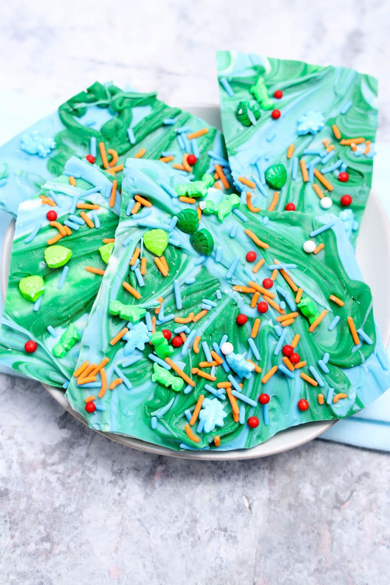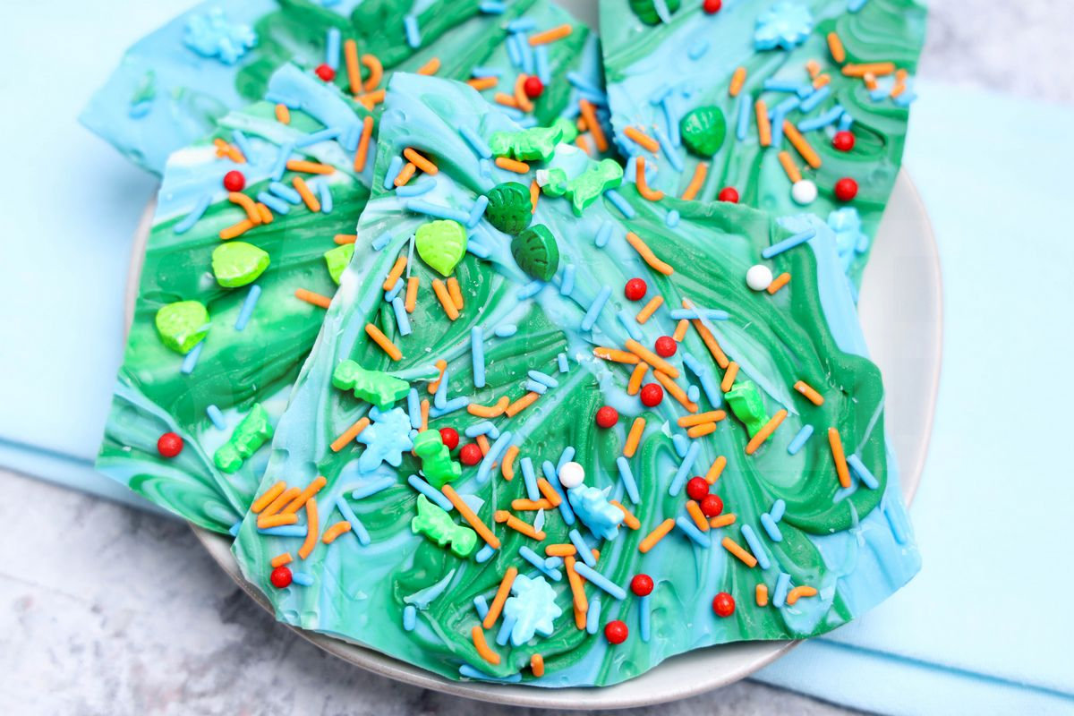 Jurassic Bark is made with candy melts and dino roar sprinkles. This is a semi exclusive recipe. The Jurassic Bark comes on a white plate with marble wood backdrop. Set comes with 11 in process (in process are the same for all sets) and 15 final shots (finals are different for each set) along with recipe in text format. Both vertical and horizontal shots are available for social media. One set of four. Sample removed on finals.