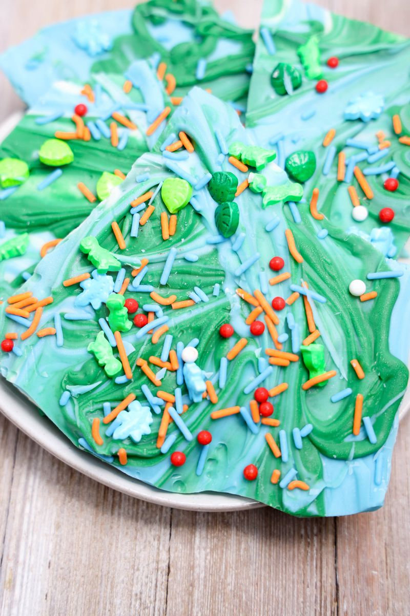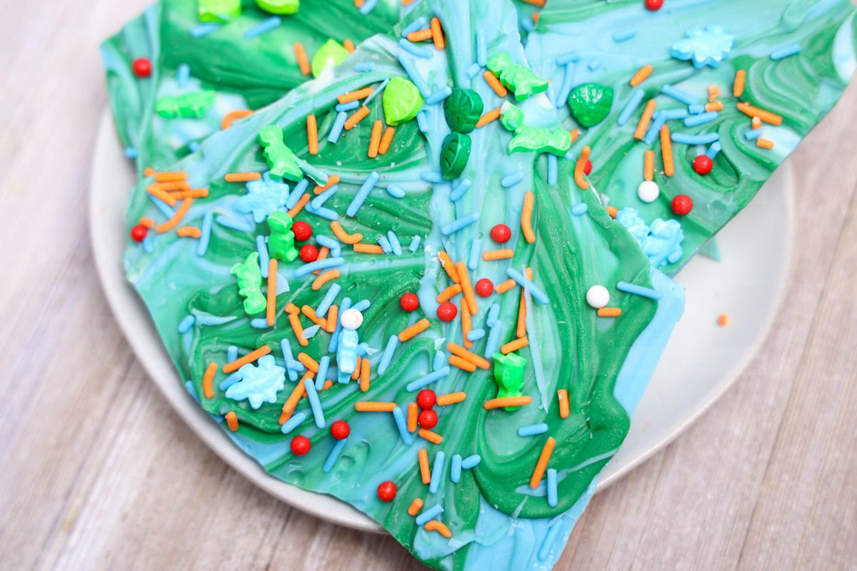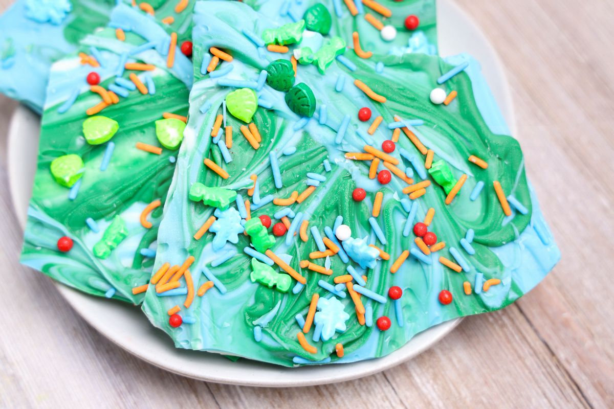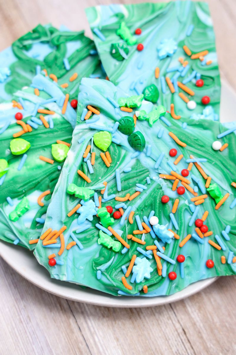 Jurassic Bark is made with candy melts and dino roar sprinkles. This is a semi exclusive recipe. The Jurassic Bark comes on a white plate with rustic wood backdrop. Set comes with 11 in process (in process are the same for all sets) and 14 final shots (finals are different for each set) along with recipe in text format. Both vertical and horizontal shots are available for social media. One set of four. Sample removed on finals.