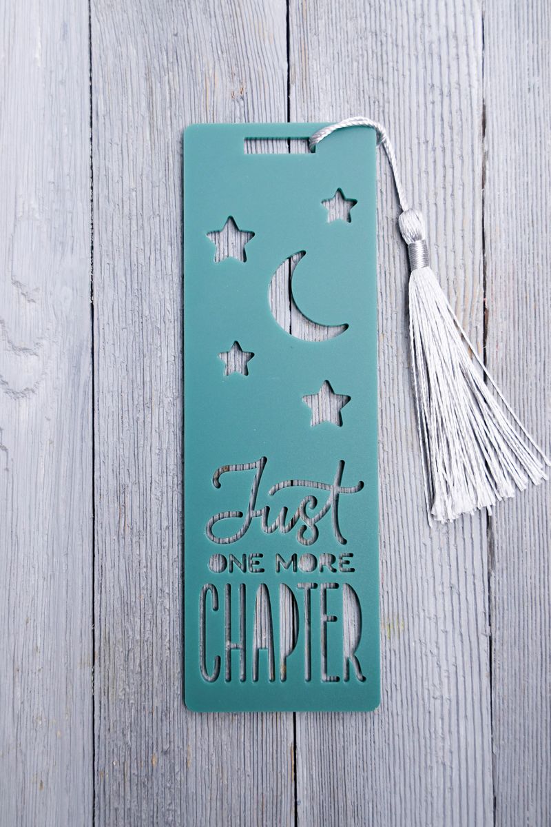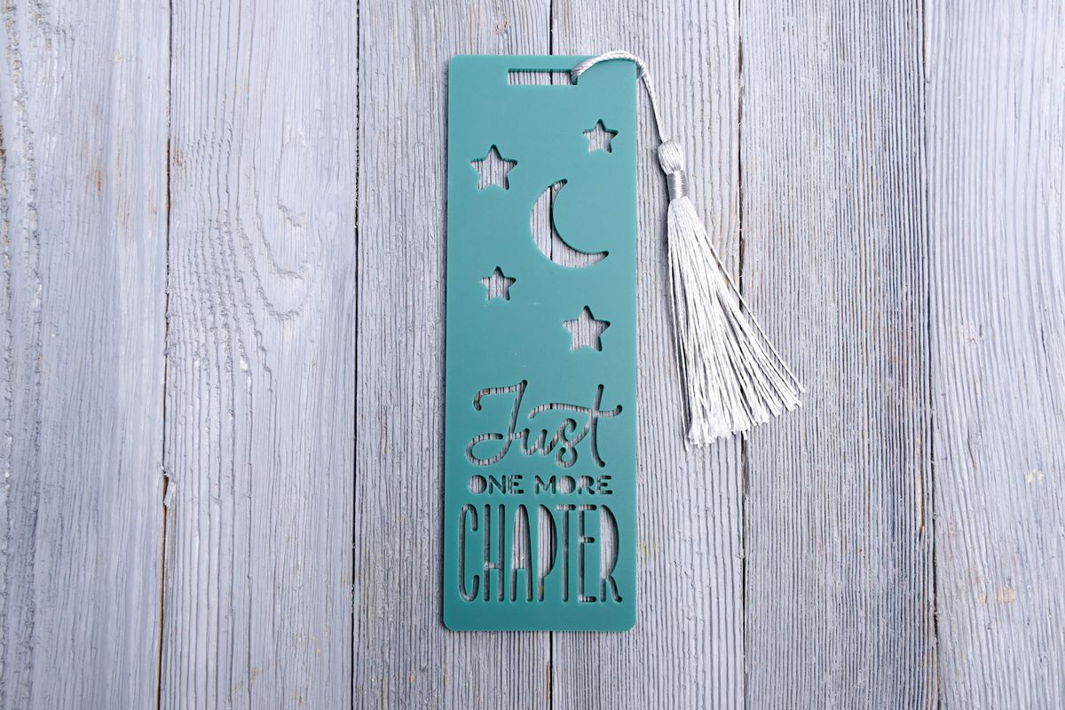 Just One More Chapter Bookmark is made with acrylic, XTool P2S, and XTool Studio. This is a semi exclusive craft. The Just One More Chapter Bookmark comes on gray wood backdrop. Set comes with 8 in process and 19 final shots (all in process sets in semi exclusive are the same) along with SVG and tutorial in text format. Both vertical and horizontal shots are available for social media. One set of two. Sample removed on finals.