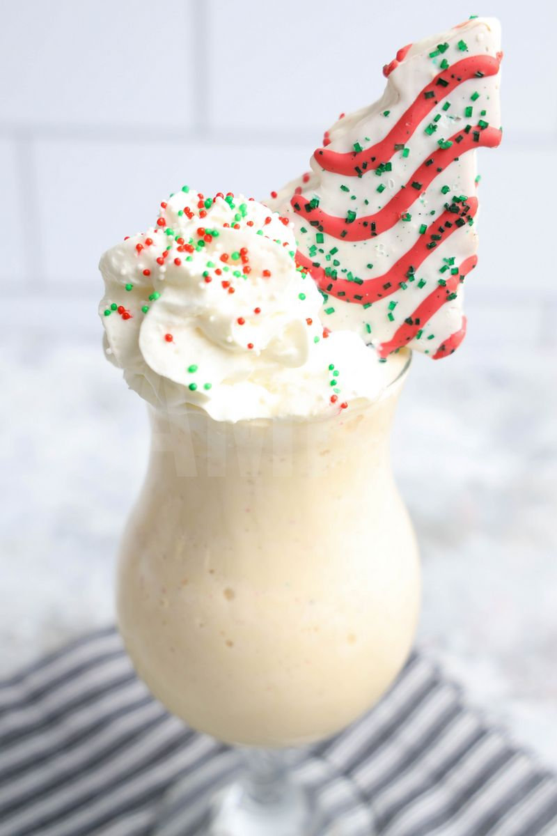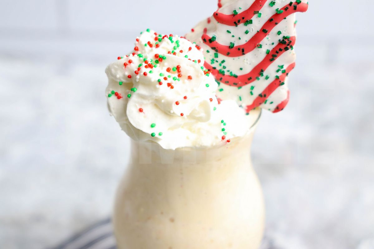 Little Debbie’s Christmas Tree Shake is made with ice cream, Little Debbie’s Christmas tree snacks, and whipped topping. This is a semi exclusive recipe. The Little Debbie’s Christmas Tree Shake comes in a clear glass with a gray striped napkin on a marble wood backdrop. Set comes with 7 in process (in process are the same for all sets) and 18 final shots (finals are different for each set) along with recipe in text format. Both vertical and horizontal shots are available for social media. One set of four. Sample removed on finals.