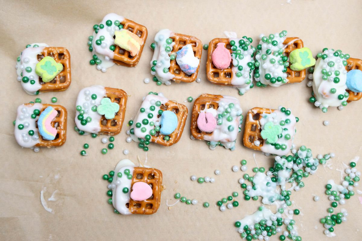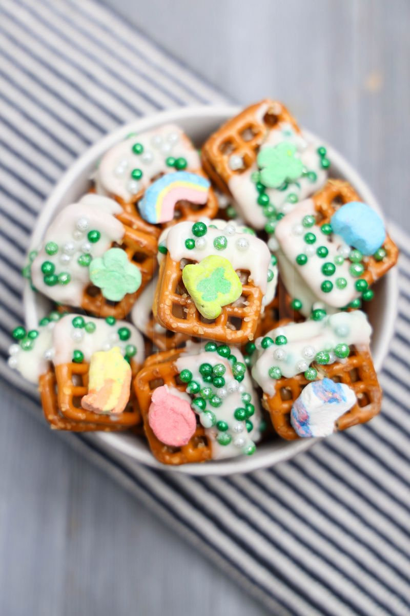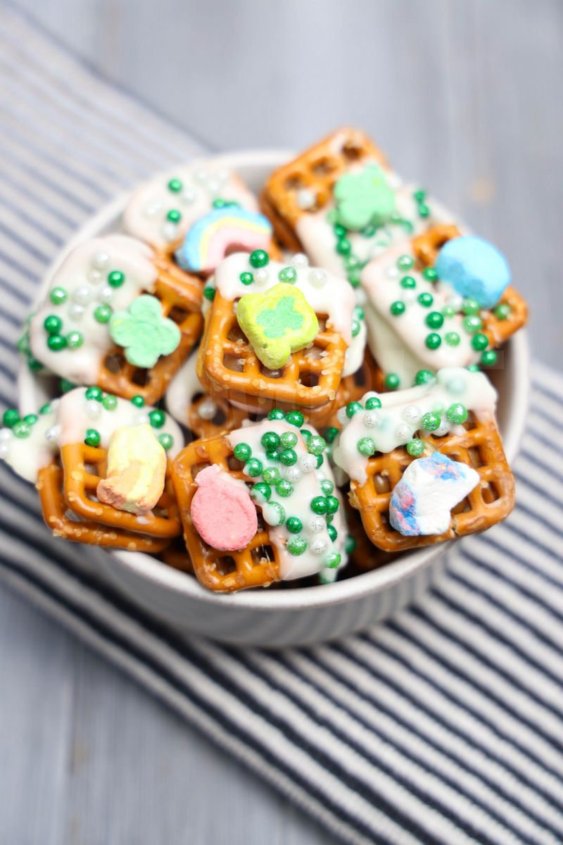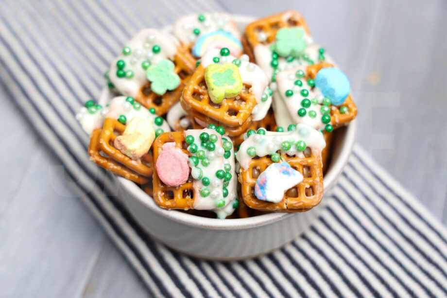 Lucky Charms Caramel Pretzels is made with Ghirardelli’s white chocolate, pretzels, sprinkles, and caramel. This is a semi exclusive recipe. The Lucky Charms Caramel Pretzels comes in a white bowl on a gray wood backdrop. Set comes with 16 in process (in process are the same for all sets) and 16 final shots (finals are different for each set) along with recipe in text format. Both vertical and horizontal shots are available for social media. One set of four. Sample removed on finals.