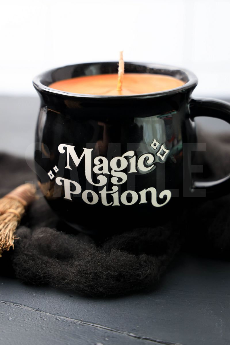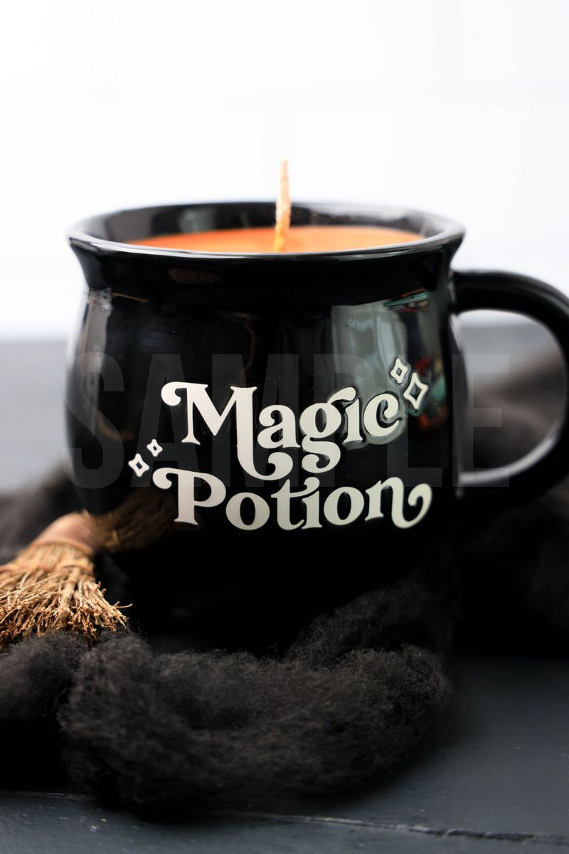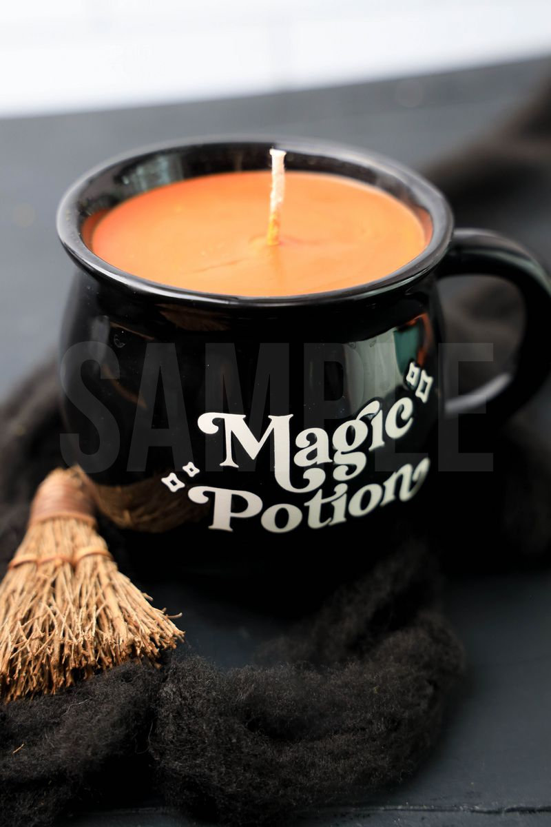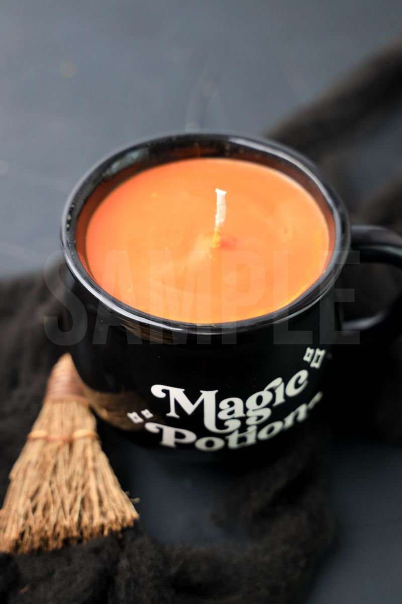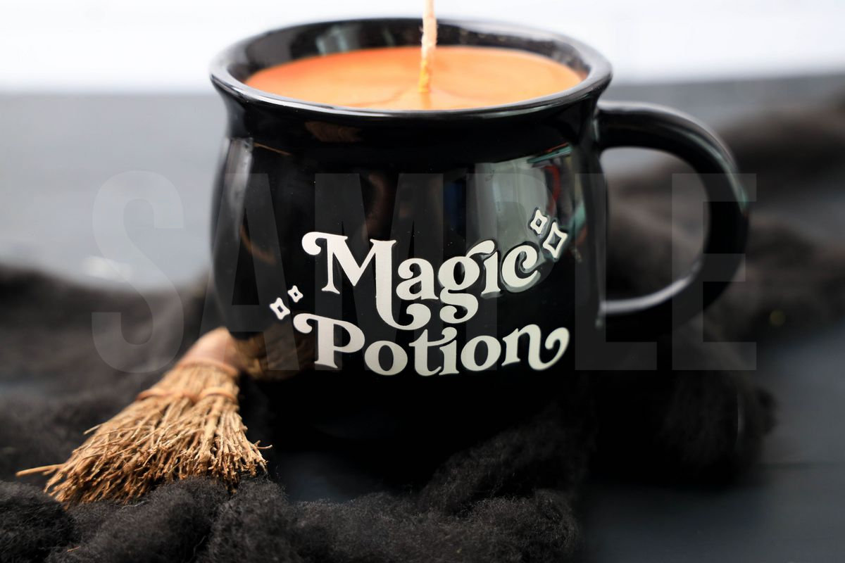 Magic Potion Cauldron Mug Exclusive made with a cauldron mug, candle wax, and candle dye. This is a exclusive craft. The Magic Potion Cauldron Mug Exclusive comes on a black backdrop with black spider web. Set comes with 16 in process and 18 final shots along with tutorial in text format and image. Both vertical and horizontal shots are available for social media. Sample removed on finals.