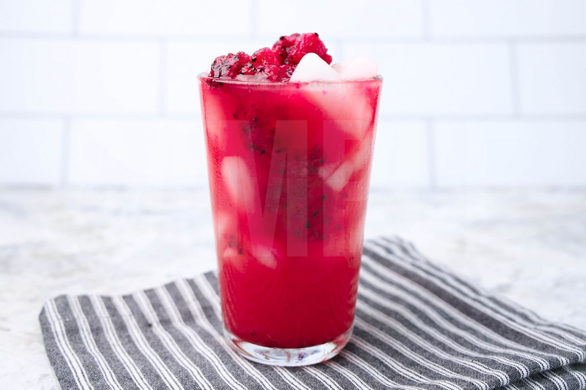 Mango Dragonfruit Lemonade Starbuck’s Copycat is made with white grape juice, lemonade, and dragon fruit. This is a semi exclusive recipe. The Mango Dragonfruit Lemonade Starbuck’s Copycat comes in a clear glass with a gray striped napkin on a marble backdrop. Set comes with 8 in process (in process are the same for all sets) and 16 final shots (finals are different for each set) along with recipe in text format. Both vertical and horizontal shots are available for social media. One set of four. Sample removed on finals.