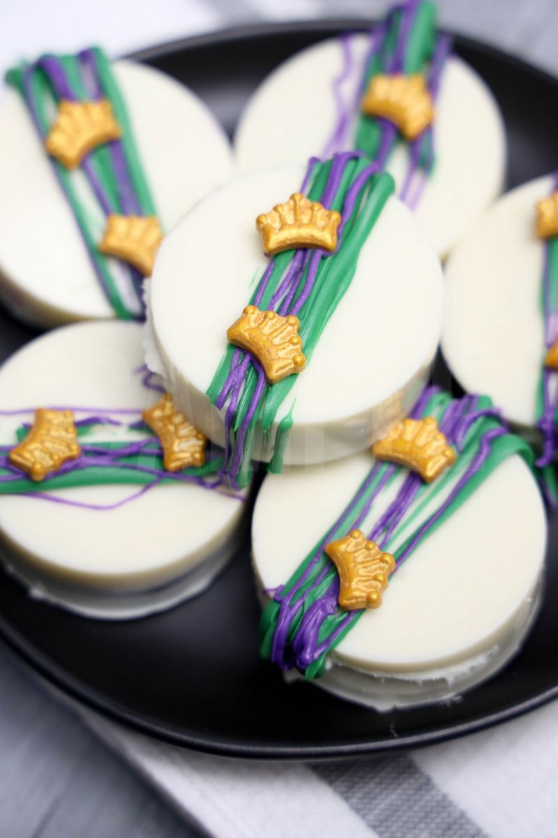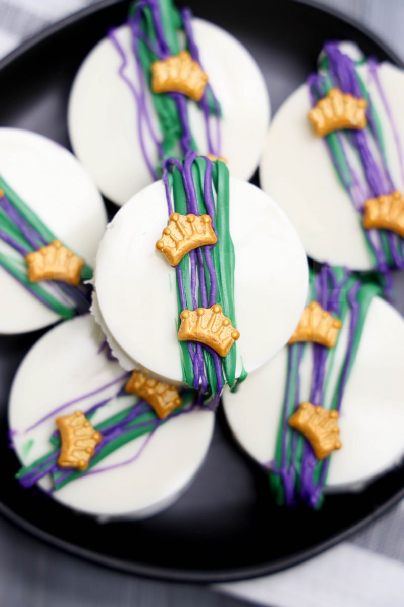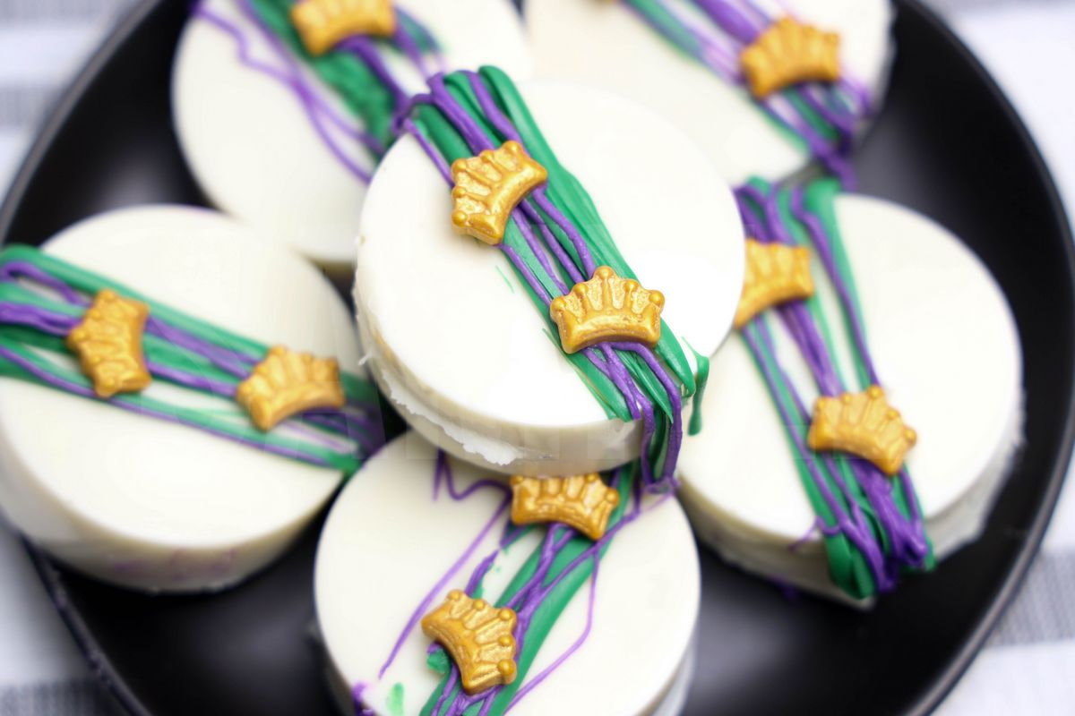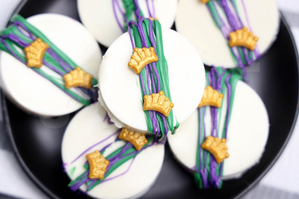 Mardi Gras Oreos is made with oreos, white chocolate, and green and purple candy melts. This is a semi exclusive recipe. The Mardi Gras Oreos comes on a black plate with a gray wood backdrop. Set comes with 10 in process (in process are the same for all sets) and 15 final shots (finals are different for each set) along with recipe in text format. Both vertical and horizontal shots are available for social media. One set of four. Sample removed on finals.