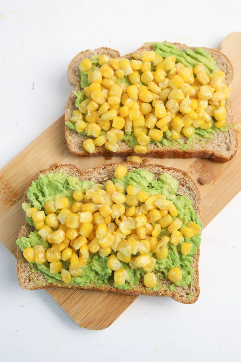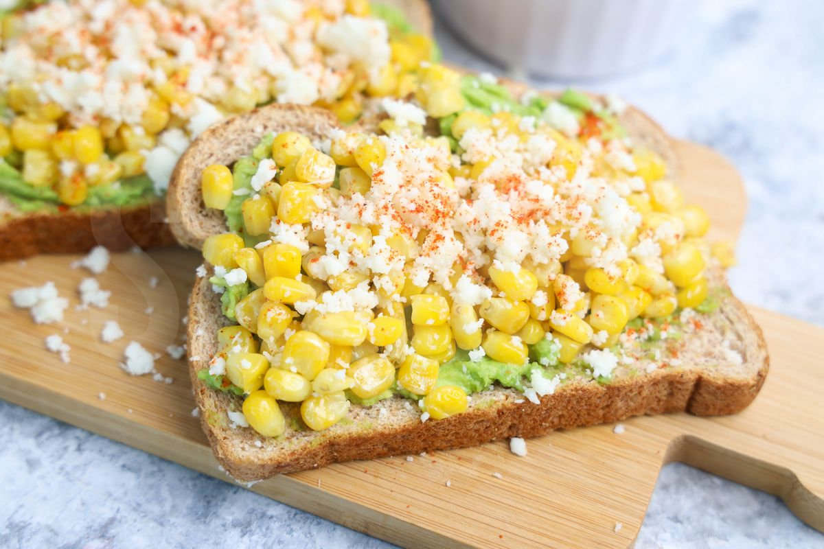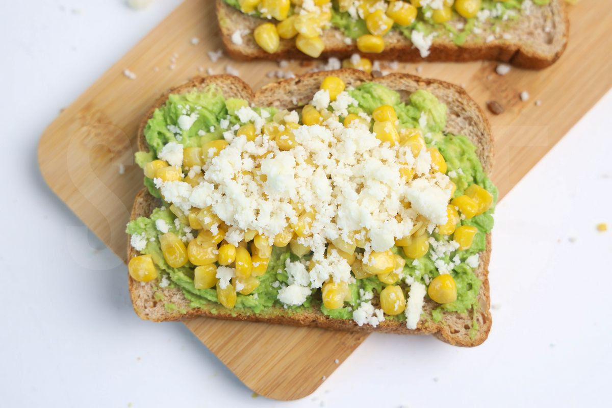 Mexican Corn Salad Toast is made with corn, avocado, cayenne pepper, queso fresco cheese, and salt. This is a semi exclusive recipe. The Mexican Corn Salad Toast comes on a wood cutting board with a gray plaid napkin on a marble wood backdrop. Set comes with 14 in process (in process are the same for all sets) and 21 final shots (finals are different for each set) along with recipe in text format. Both vertical and horizontal shots are available for social media. One set of four. Sample removed on finals.