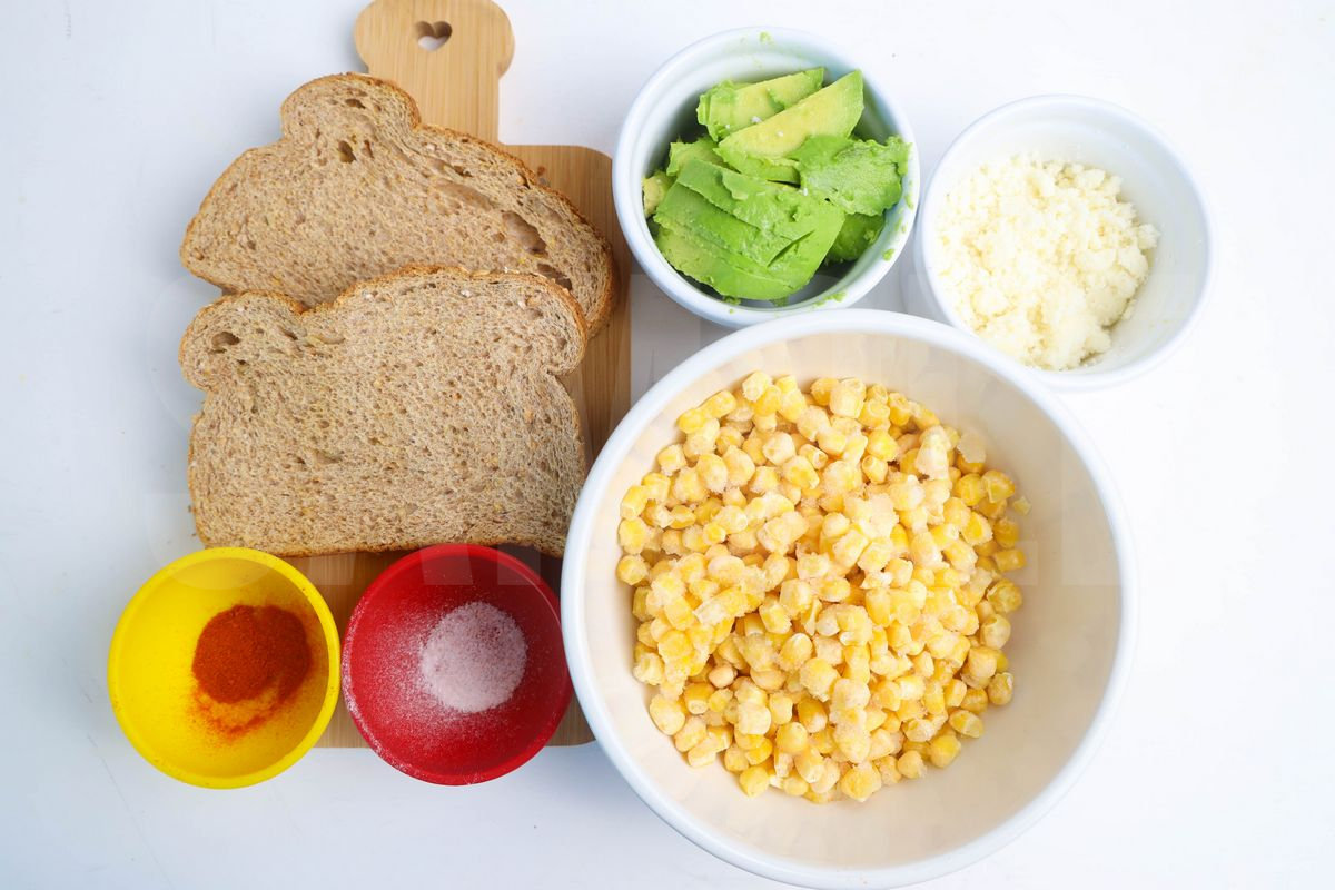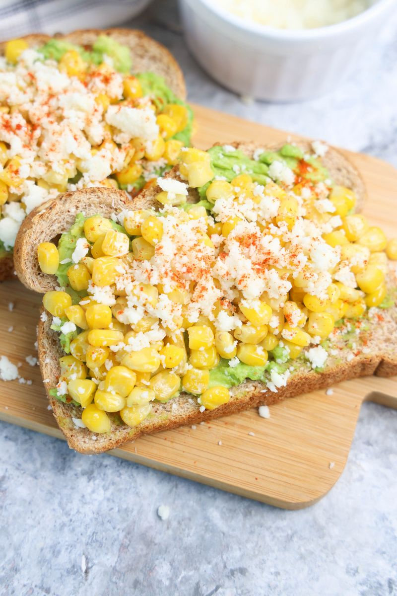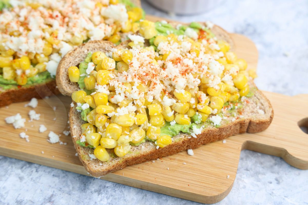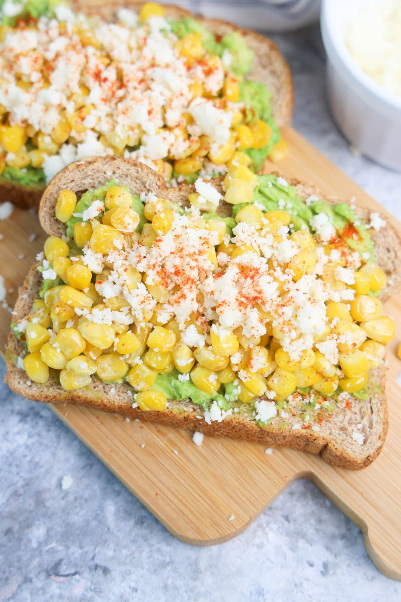 Mexican Corn Salad Toast is made with corn, avocado, cayenne pepper, queso fresco cheese, and salt. This is a semi exclusive recipe. The Mexican Corn Salad Toast comes on a wood cutting board with a gray plaid napkin on a marble wood backdrop. Set comes with 14 in process (in process are the same for all sets) and 21 final shots (finals are different for each set) along with recipe in text format. Both vertical and horizontal shots are available for social media. One set of four. Sample removed on finals.
