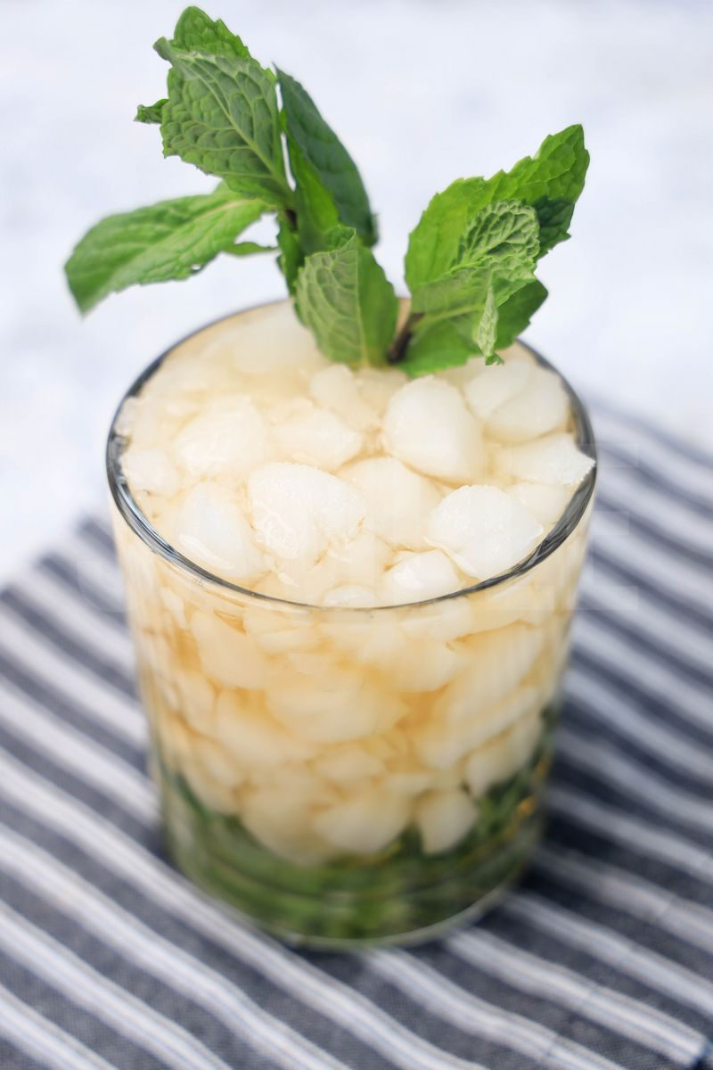 Mint Julep is made with mint leaves, simple syrup, and Kentucky bourbon. This is a semi exclusive recipe. The Mint Julep comes in a glass with a gray striped napkin on a marble backdrop. Set comes with 8 in process (in process are the same for all sets) and 14 final shots (finals are different for each set) along with recipe in text format. Both vertical and horizontal shots are available for social media. One set of four. Sample removed on finals.