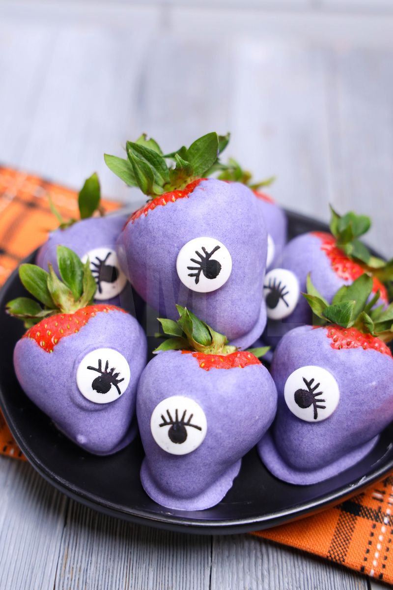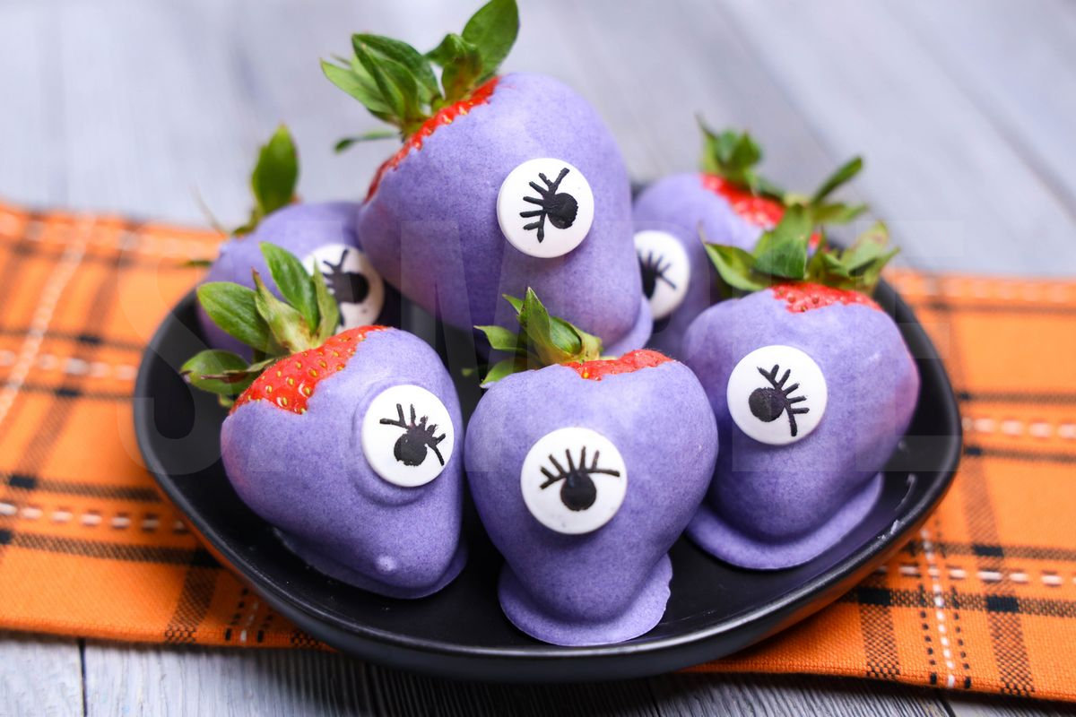Monster Strawberries is made with chocolate wafers, strawberries, and sprinkles. This is a semi exclusive recipe. The Monster Strawberries comes on a black plate with gray wood backdrop. Set comes with 12 in process (in process are the same for all sets) and 17 final shots (finals are different for each set) along with recipe in text format. Both vertical and horizontal shots are available for social media. One set of four. Sample removed on finals.