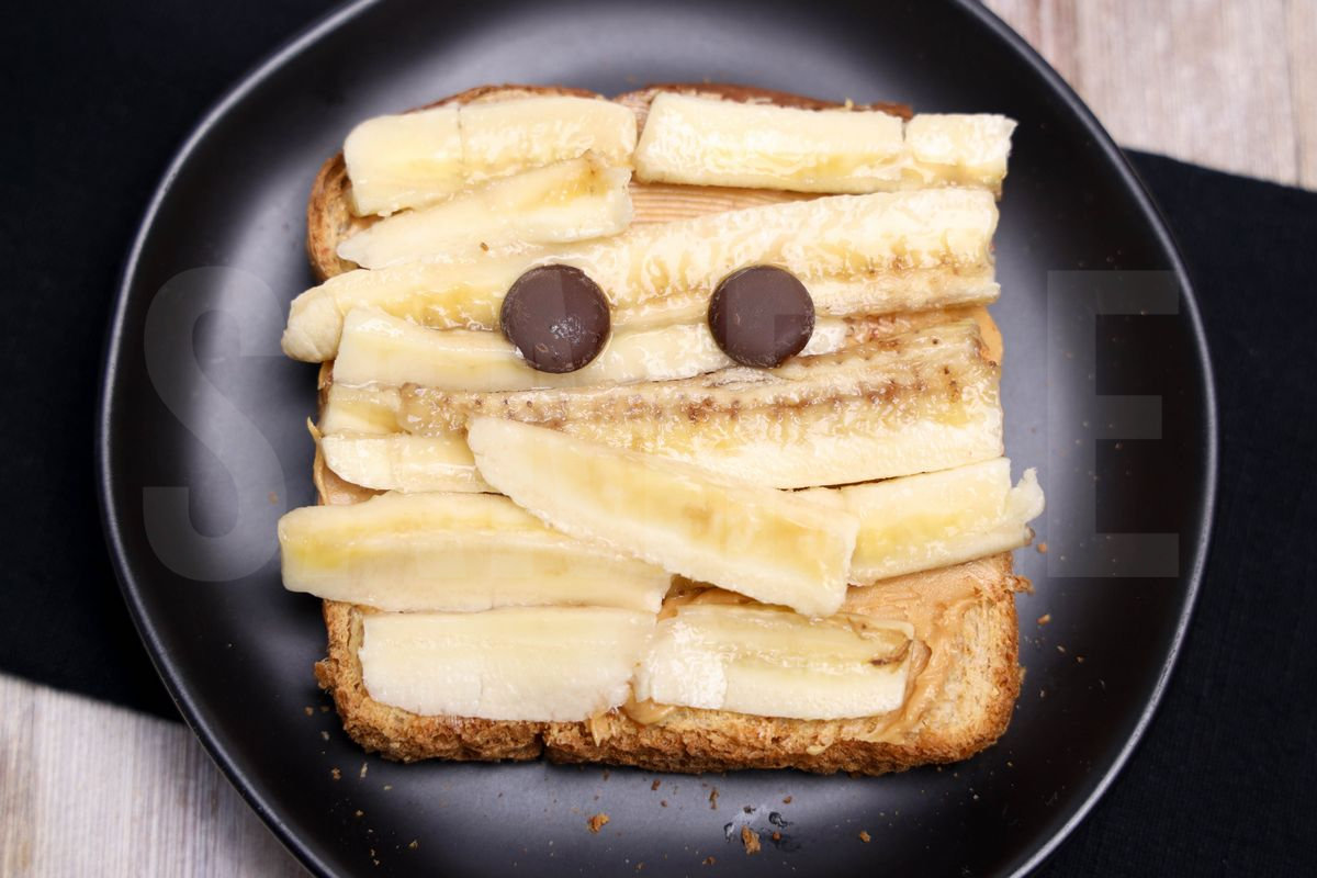 Mummy Toast is made with bread, peanut butter, bananas, and chocolate chips. This is a semi exclusive recipe. The Mummy Toast comes on a black plate with a rustic wood backdrop. Set comes with 7 in process (in process are the same for all sets) and 15 final shots (finals are different for each set) along with recipe in text format. Both vertical and horizontal shots are available for social media. One set of four. Sample removed on finals.