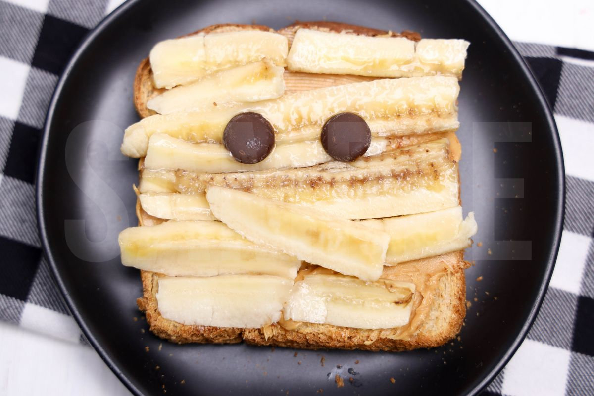 Mummy Toast is made with bread, peanut butter, bananas, and chocolate chips. This is a semi exclusive recipe. The Mummy Toast comes on a black plate with a white wood backdrop. Set comes with 7 in process (in process are the same for all sets) and 15 final shots (finals are different for each set) along with recipe in text format. Both vertical and horizontal shots are available for social media. One set of four. Sample removed on finals.