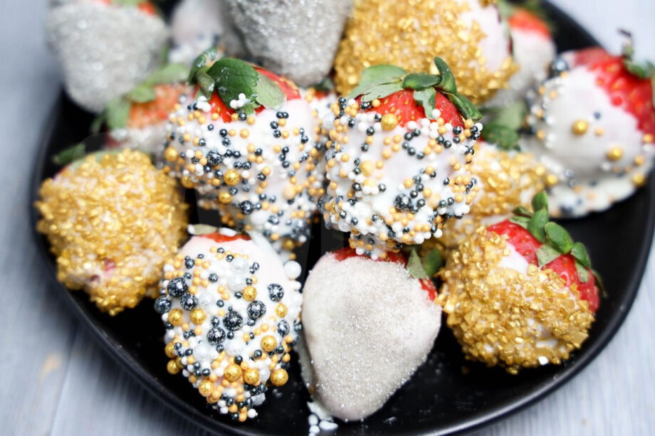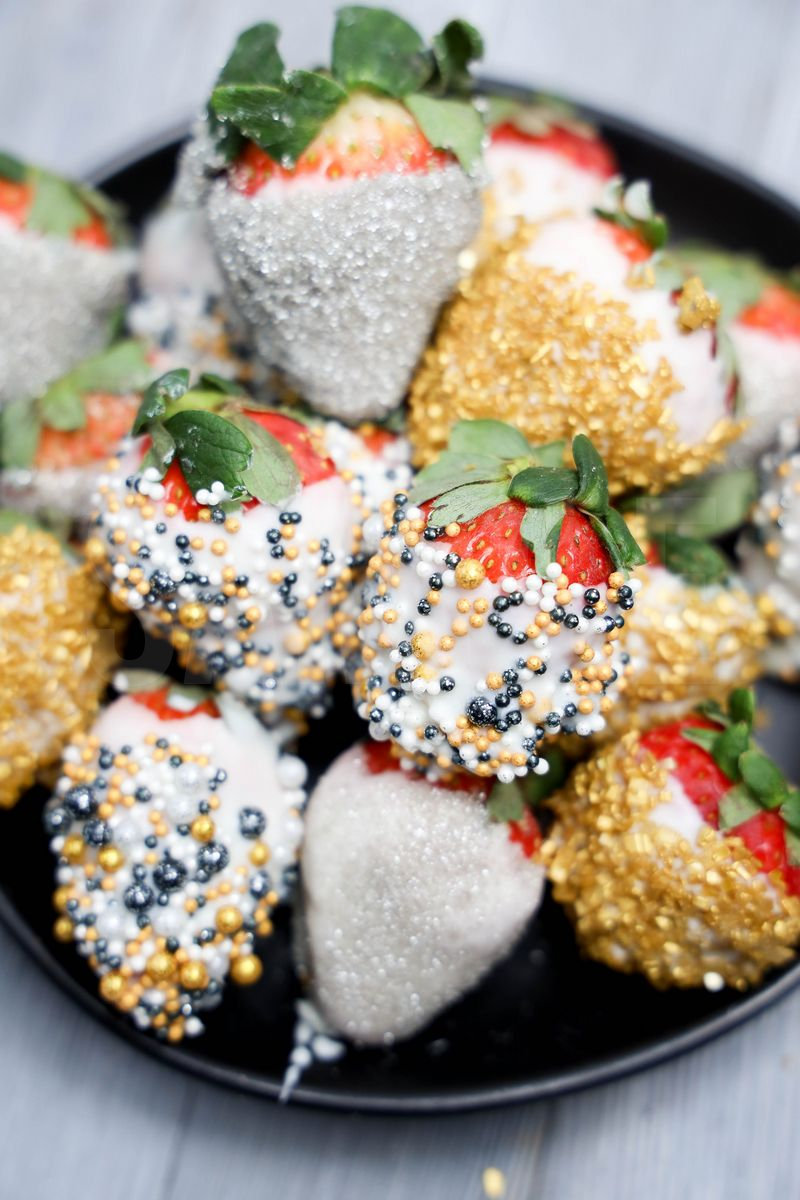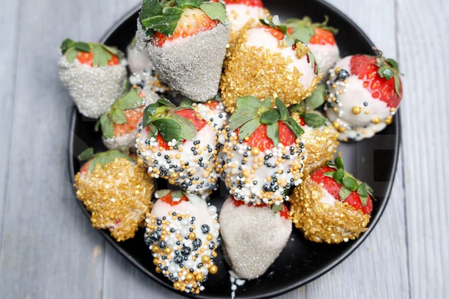 New Year’s Eve Strawberries is made with strawberries, white melting wafers, and candy sprinkles. This is a semi exclusive recipe. The New Year’s Eve Strawberries comes on a white plate with gray wood backdrop. Set comes with 9 in process (in process are the same for all sets) and 16 final shots (finals are different for each set) along with recipe in text format. Both vertical and horizontal shots are available for social media. One set of four. Sample removed on finals.