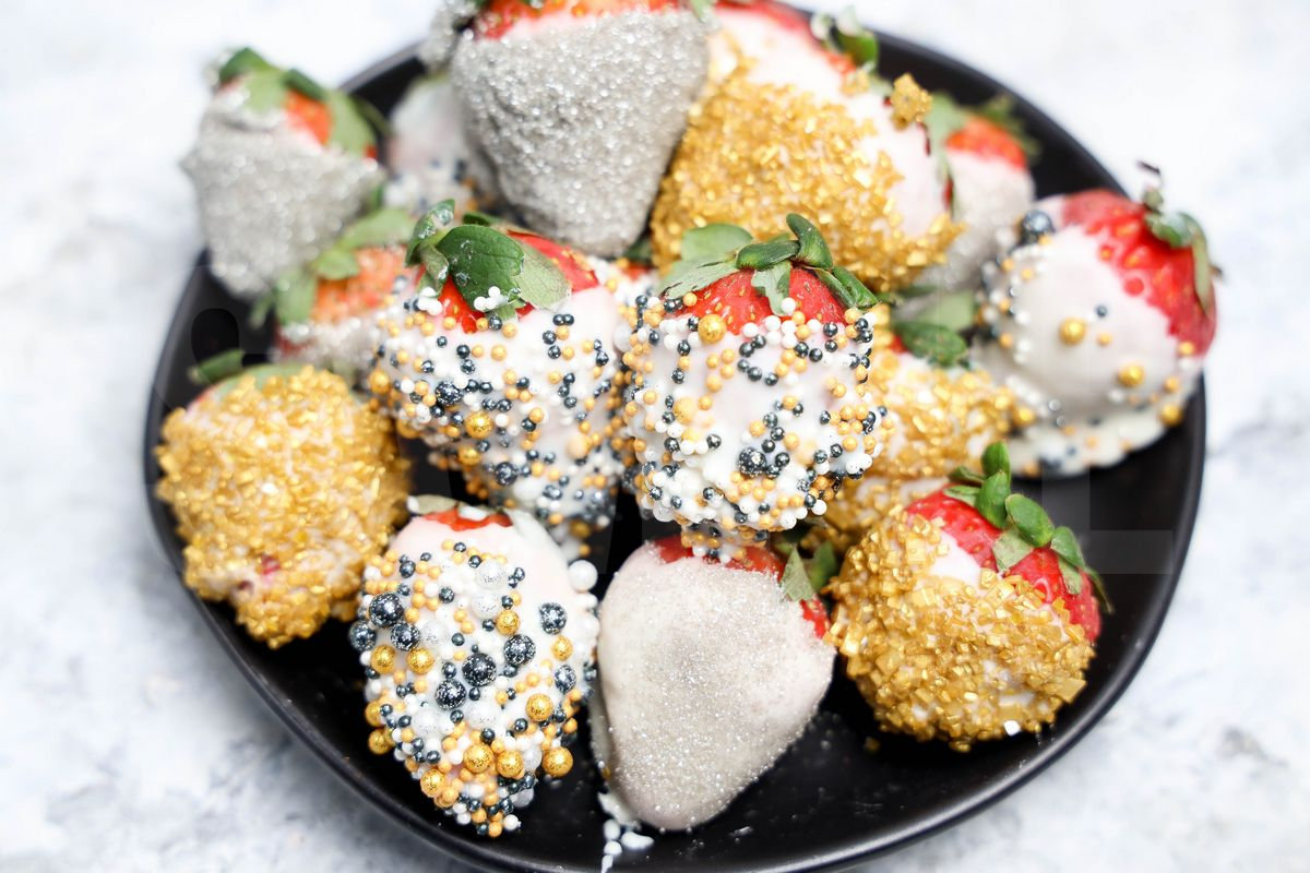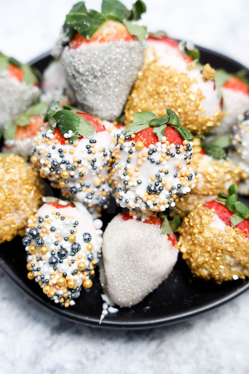 New Year’s Eve Strawberries is made with strawberries, white melting wafers, and candy sprinkles. This is a semi exclusive recipe. The New Year’s Eve Strawberries comes on a white plate with marble wood backdrop. Set comes with 9 in process (in process are the same for all sets) and 16 final shots (finals are different for each set) along with recipe in text format. Both vertical and horizontal shots are available for social media. One set of four. Sample removed on finals.