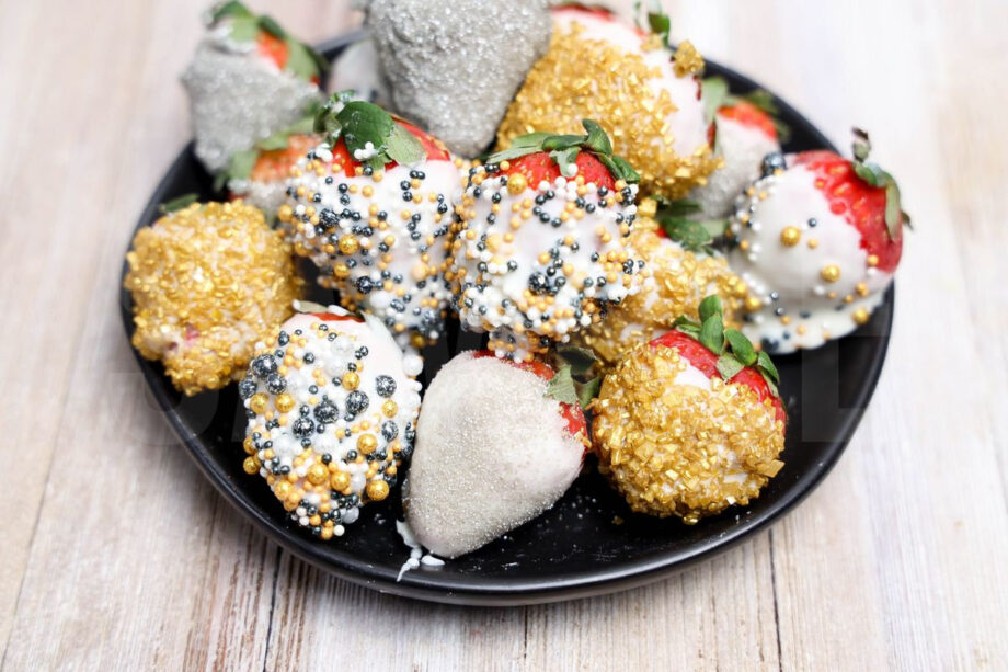 New Year’s Eve Strawberries is made with strawberries, white melting wafers, and candy sprinkles. This is a semi exclusive recipe. The New Year’s Eve Strawberries comes on a white plate with rustic wood backdrop. Set comes with 9 in process (in process are the same for all sets) and 16 final shots (finals are different for each set) along with recipe in text format. Both vertical and horizontal shots are available for social media. One set of four. Sample removed on finals.