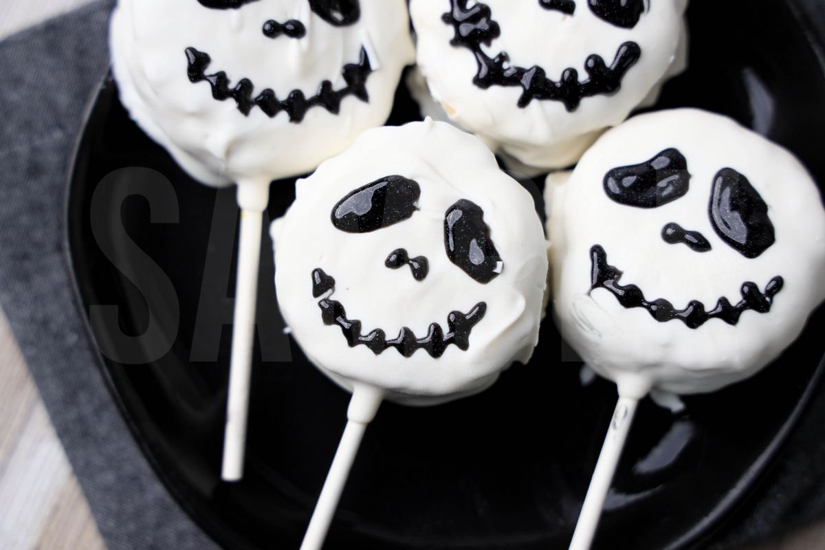 Nightmare Before Christmas Rice Krispy Pops is made with rice krispy treats, white candy melts, and .black sparkle gel. This is a semi exclusive recipe. The Nightmare Before Christmas Rice Krispy Pops comes a black plate with a denim napkin on a rustic wood backdrop. Set comes with 6 in process (in process are the same for all sets) and 15 final shots (finals are different for each set) along with recipe in text format. Both vertical and horizontal shots are available for social media. One set of four. Sample removed on finals.