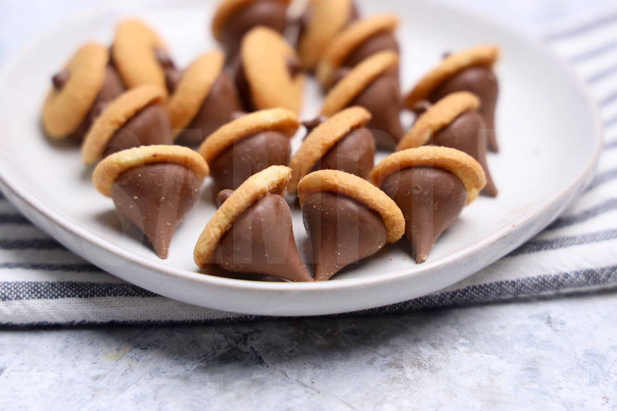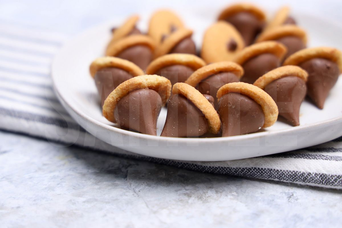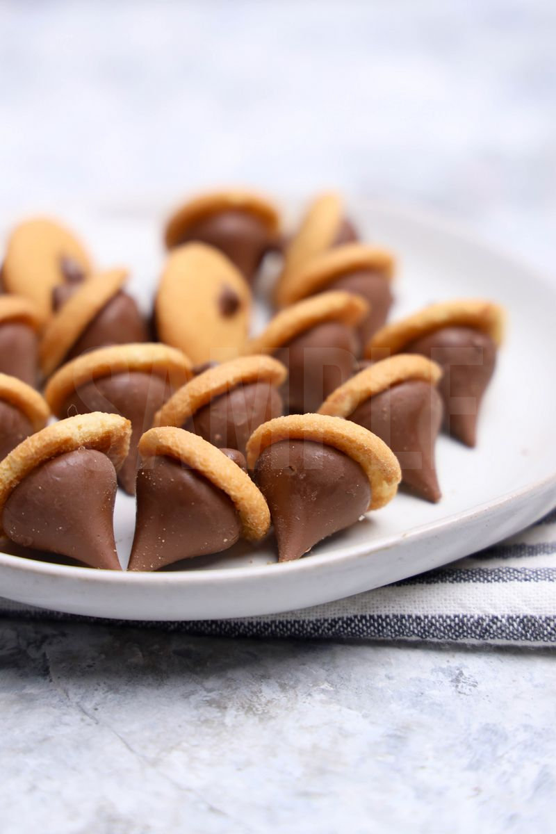 Nilla Acorns is made with hershey’s kisses, nilla wafers, and ghirardelli’s. This is a semi exclusive recipe. The  comes on a white plate with a marble wood backdrop. Set comes with 8 in process (in process are the same for all sets) and 16 final shots (finals are different for each set) along with recipe in text format. Both vertical and horizontal shots are available for social media. One set of four. Sample removed on finals.