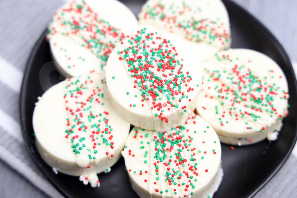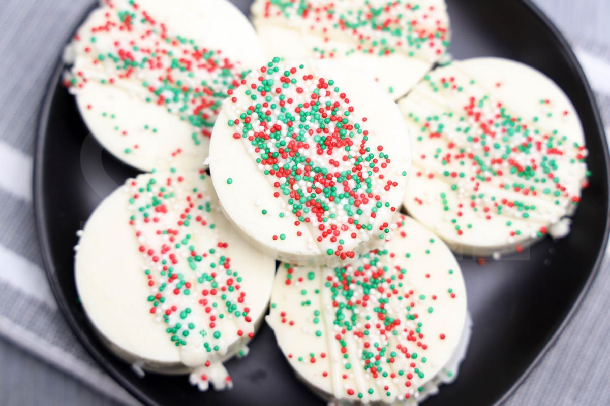 Nutella Christmas Ritz Cookies is made with Ritz cookies, Ghriradelli’s white chocolate, Christmas sprinkles, and Nutella. This is a semi exclusive recipe. The Nutella Christmas Ritz Cookies comes on a black plate with a gray wood backdrop. Set comes with 11 in process (in process are the same for all sets) and 17 final shots (finals are different for each set) along with recipe in text format. Both vertical and horizontal shots are available for social media. One set of four. Sample removed on finals.