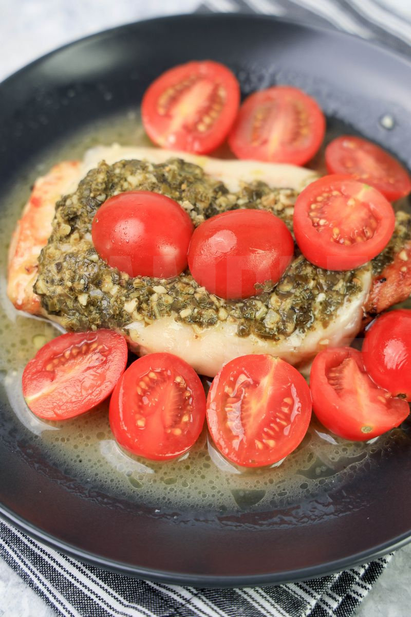 Olive Garden Copycat Grilled Chicken Margherita is made with chicken, mozzarella cheese, and green pesto. This is a semi exclusive recipe. The Olive Garden Copycat Grilled Chicken Margherita comes on a gray striped napkin on a gray plate with a marble backdrop. Set comes with 10 in process (in process are the same for all sets) and 14 final shots (finals are different for each set) along with recipe in text format. Both vertical and horizontal shots are available for social media. One set of four. Sample removed on finals.