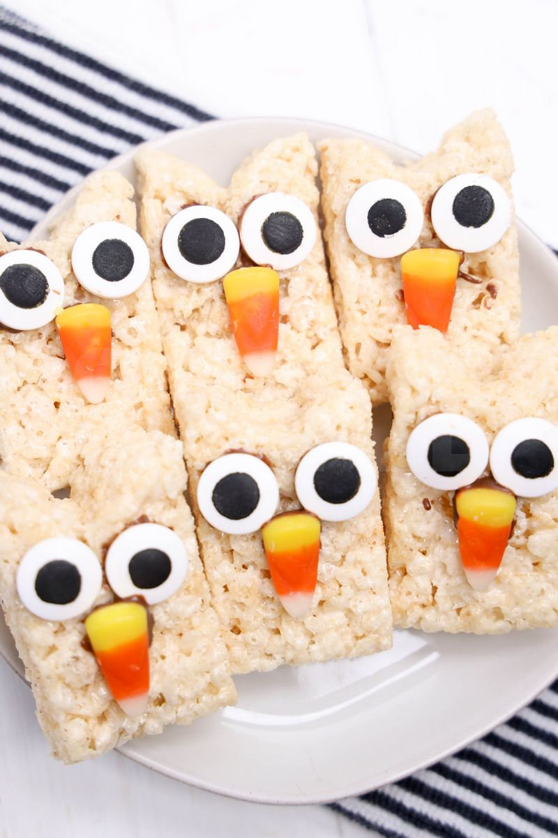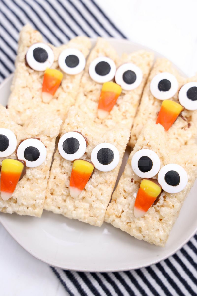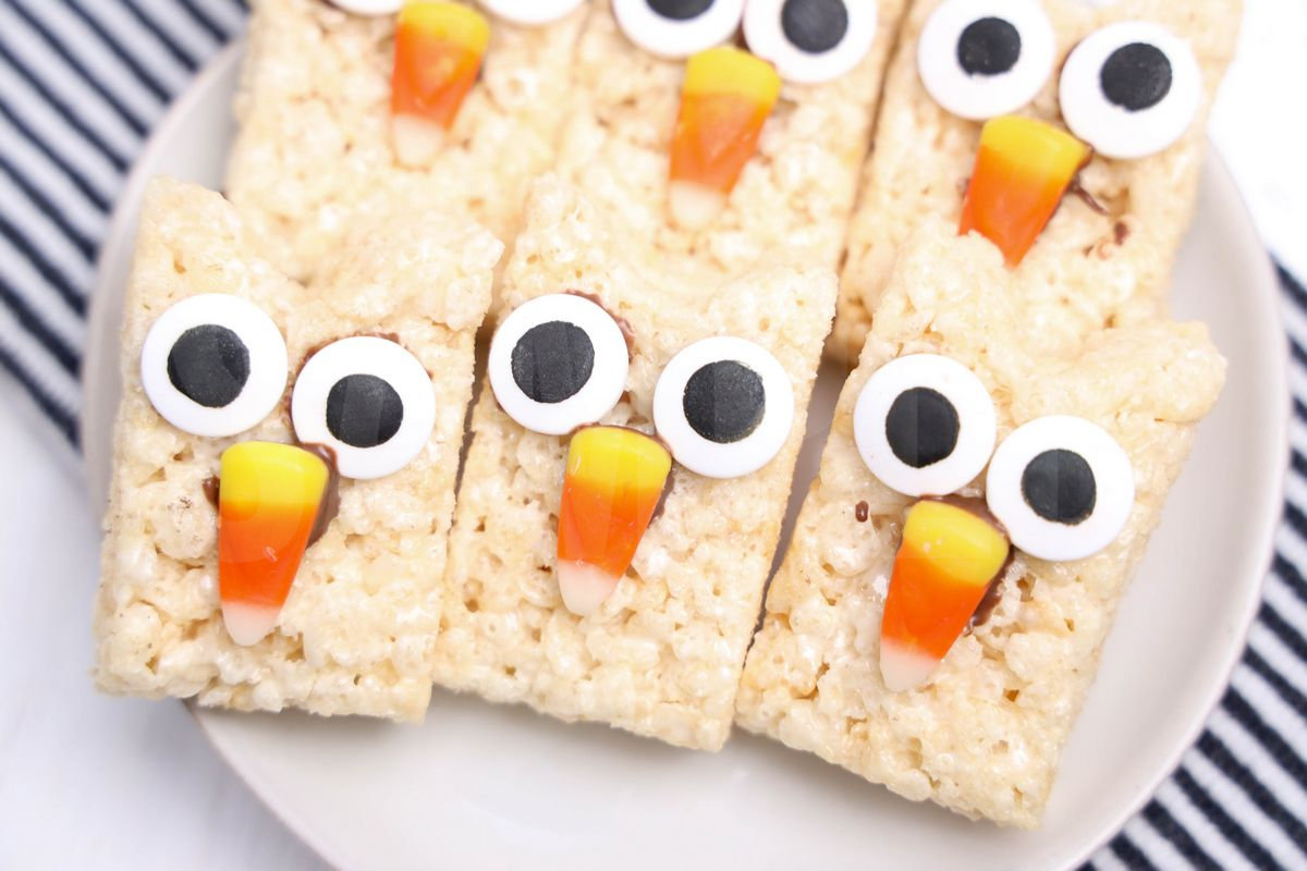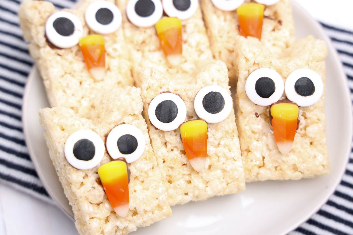 Owl Rice Krispies Treats is made with rice krispies, candy eyes, Ghirardelli’s milk chocolate, and candy corn. This is a semi exclusive recipe. The Owl Rice Krispies Treats comes on a white plate with a white wood backdrop. Set comes with 7 in process (in process are the same for all sets) and 16 final shots (finals are different for each set) along with recipe in text format. Both vertical and horizontal shots are available for social media. One set of four. Sample removed on finals.
