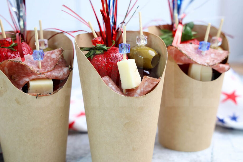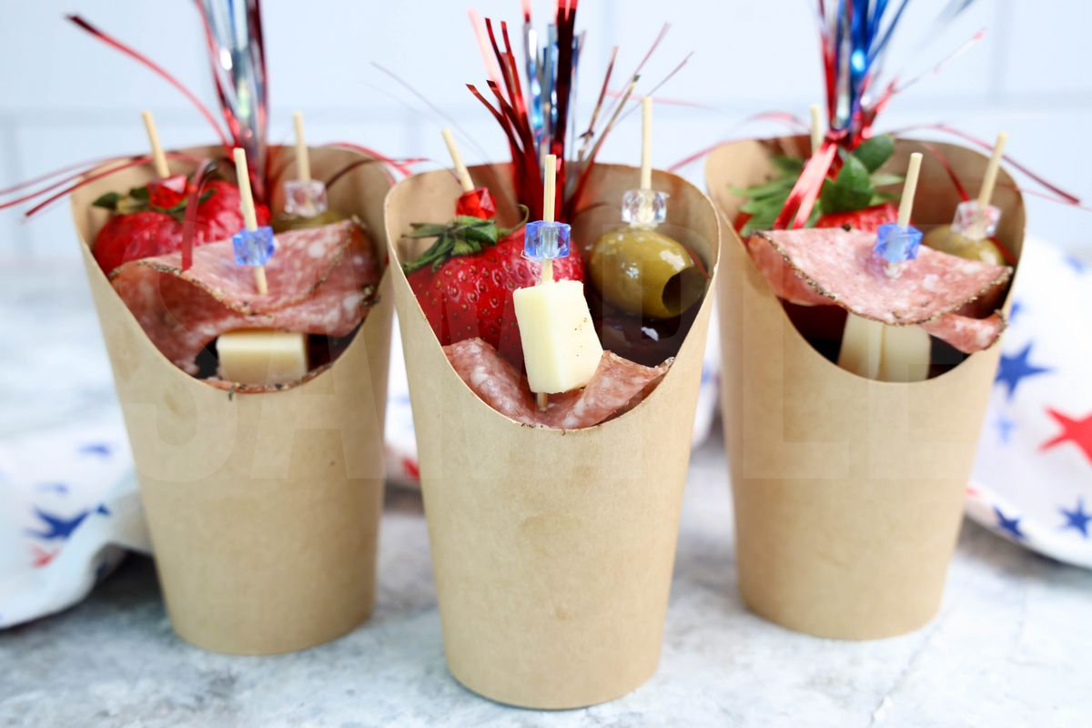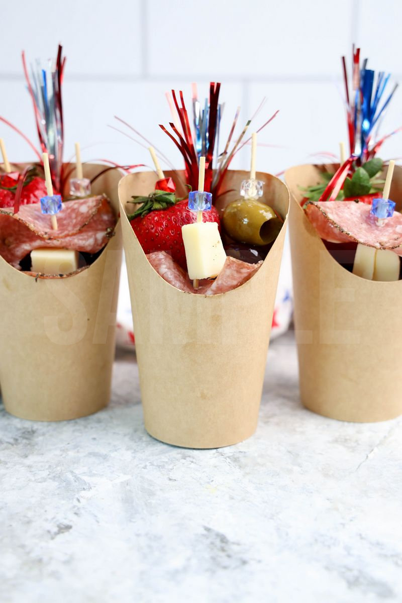 Patriotic Antipasto Cups is made with blueberries, strawberries, peppered salami, green olives, kalamata olives, and cheddar cheese. This is a semi exclusive recipe. The Patriotic Antipasto Cups comes in a brown fry cup with marble wood backdrop. Set comes with 8 in process (in process are the same for all sets) and 18 final shots (finals are different for each set) along with recipe in text format. Both vertical and horizontal shots are available for social media. One set of four. Sample removed on finals.