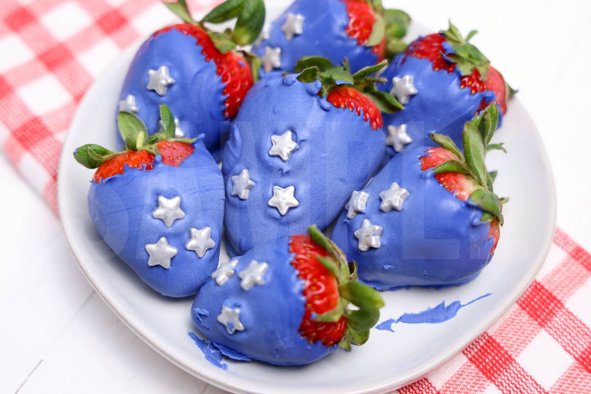 Patriotic Strawberries is made with blue candy melts, strawberries, and star sprinkles. This is a semi exclusive recipe. The Patriotic Strawberries comes in a white plate with white wood backdrop. Set comes with 12 in process (in process are the same for all sets) and 19 final shots (finals are different for each set) along with recipe in text format. Both vertical and horizontal shots are available for social media. One set of four. Sample removed on finals.