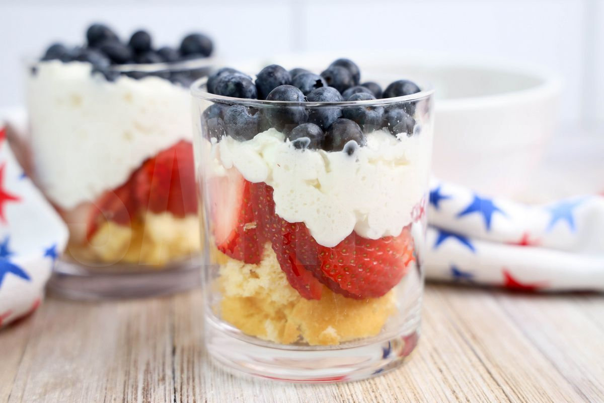 Patriotic Trifle is made with blueberries, strawberries, whipped topping, and dessert cake. This is a semi exclusive recipe. The Patriotic Trifle comes in a clear glass with rustic wood backdrop. Set comes with 16 in process (in process are the same for all sets) and 17 final shots (finals are different for each set) along with recipe in text format. Both vertical and horizontal shots are available for social media. One set of four. Sample removed on finals.
