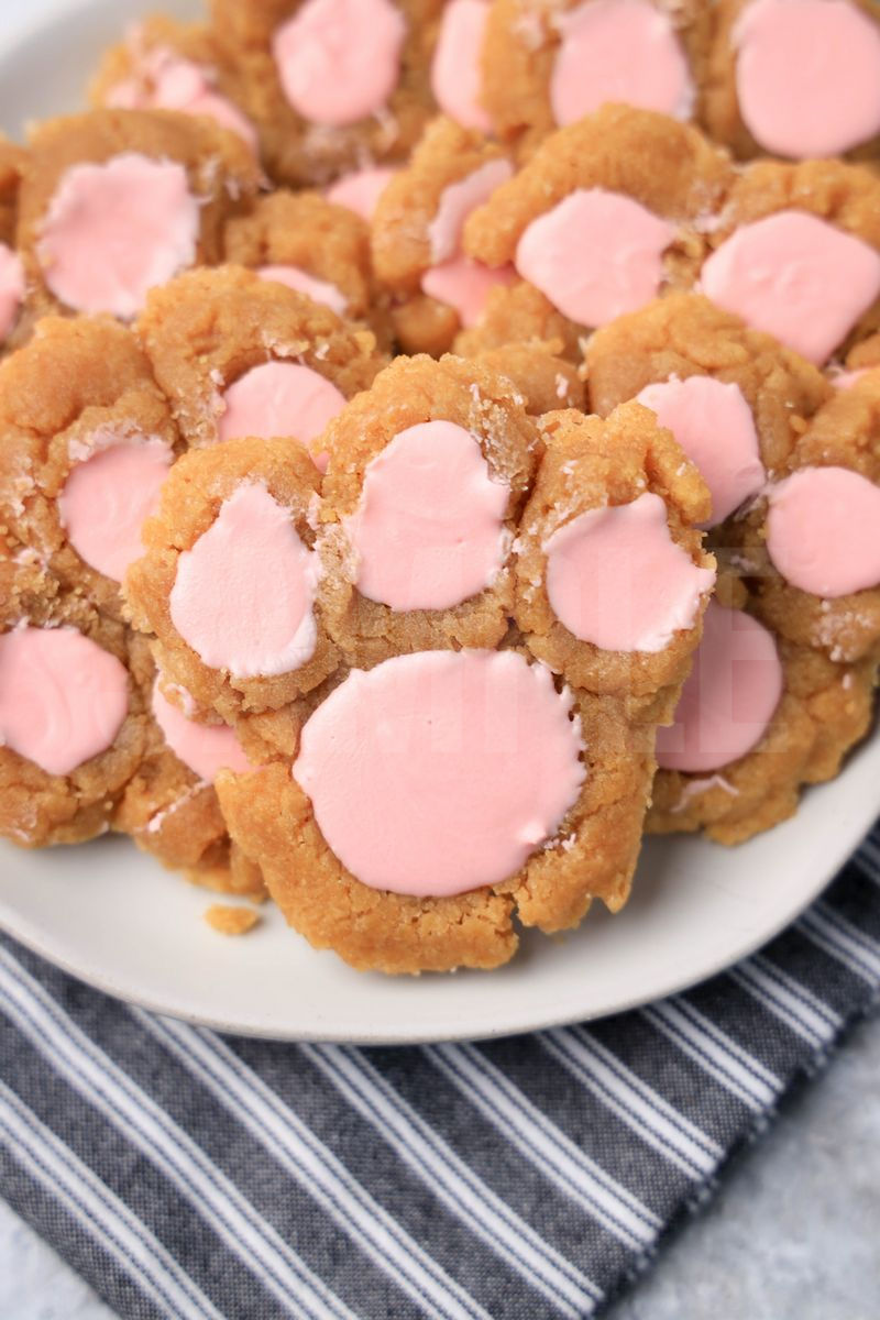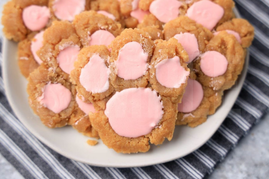 Peanut Butter Bunny Paw Cookies is made with peanut butter, eggs, and pink candy melts. This is a semi exclusive recipe. The Peanut Butter Bunny Paw Cookies comes on a white plate with a gray striped napkin on a marble backdrop. Set comes with 10 in process (in process are the same for all sets) and 17 final shots (finals are different for each set) along with recipe in text format. Both vertical and horizontal shots are available for social media. One set of four. Sample removed on finals.