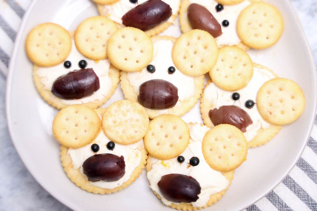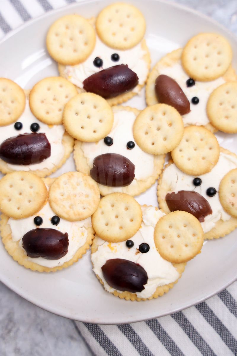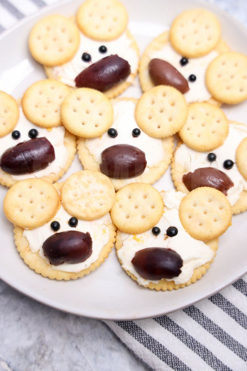 Polar Bear Crackers is made with crackers, cream cheese, mini ritz, and peppercorns. This is a semi exclusive recipe. The Polar Bear Crackers comes on a white plate with a marble wood backdrop. Set comes with 10 in process (in process are the same for all sets) and 16 final shots (finals are different for each set) along with recipe in text format. Both vertical and horizontal shots are available for social media. One set of four. Sample removed on finals.