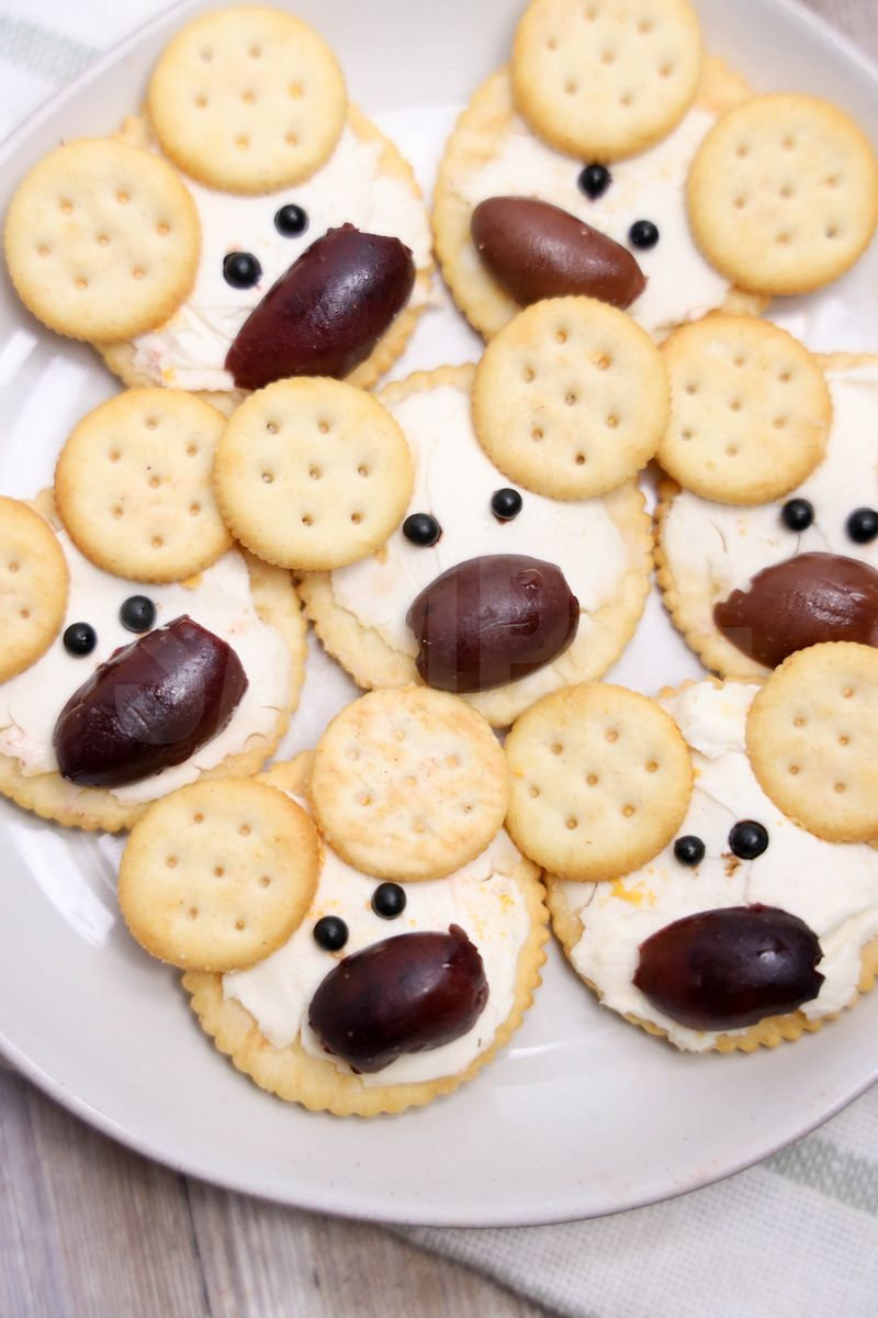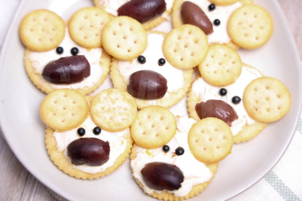 Polar Bear Crackers is made with crackers, cream cheese, mini ritz, and peppercorns. This is a semi exclusive recipe. The Polar Bear Crackers comes on a white plate with a rustic wood backdrop. Set comes with 10 in process (in process are the same for all sets) and 16 final shots (finals are different for each set) along with recipe in text format. Both vertical and horizontal shots are available for social media. One set of four. Sample removed on finals.