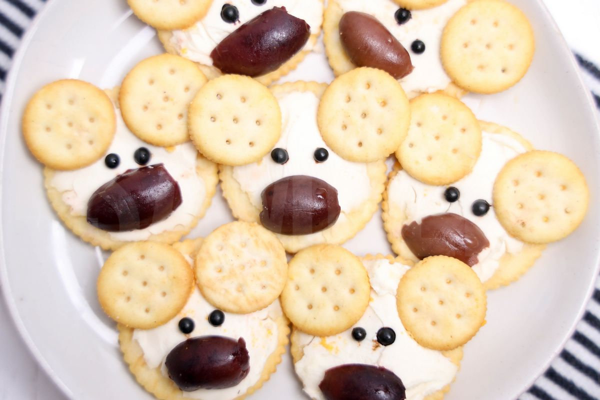 Polar Bear Crackers is made with crackers, cream cheese, mini ritz, and peppercorns. This is a semi exclusive recipe. The Polar Bear Crackers comes on a white plate with a white wood backdrop. Set comes with 10 in process (in process are the same for all sets) and 15 final shots (finals are different for each set) along with recipe in text format. Both vertical and horizontal shots are available for social media. One set of four. Sample removed on finals.