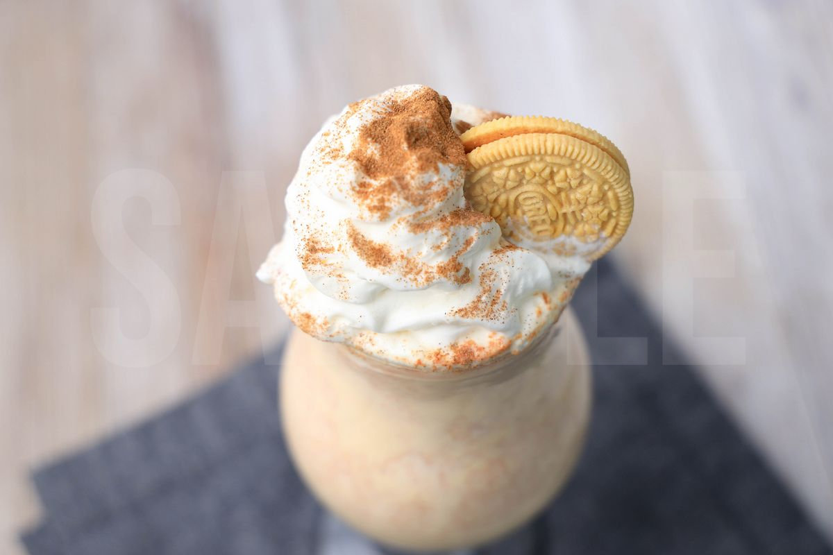 Pumpkin Spiced Oreo Shake is made with vanilla ice cream, pumpkin spiced oreos, and milk. This is a semi exclusive recipe. The Pumpkin Spiced Oreo Shake comes in a glass with a denim napkin on a rustic wood backdrop. Set comes with 6 in process (in process are the same for all sets) and 17 final shots (finals are different for each set) along with recipe in text format. Both vertical and horizontal shots are available for social media. One set of four. Sample removed on finals.