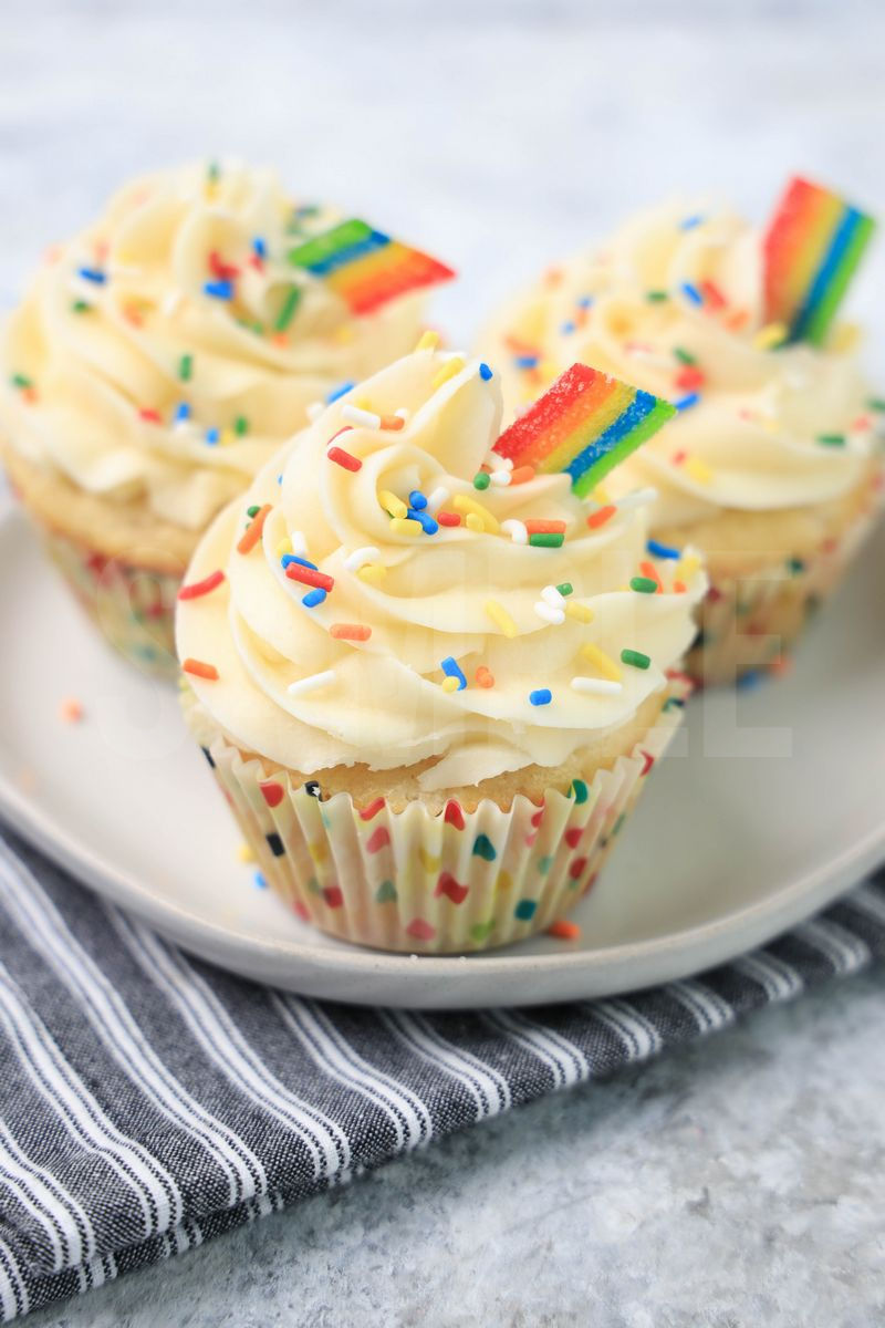 Rainbow Cupcakes is made with flour, sugar, and airhead rainbows strips. This is a semi exclusive recipe. The Rainbow Cupcakes comes on a white plate on a gray striped napkin with a marble backdrop. Set comes with 13 in process (in process are the same for all sets) and 15 final shots (finals are different for each set) along with recipe in text format. Both vertical and horizontal shots are available for social media. One set of three. Sample removed on finals.