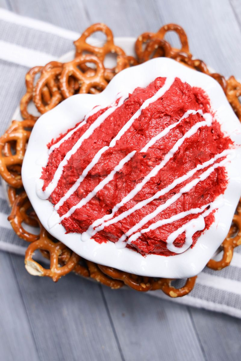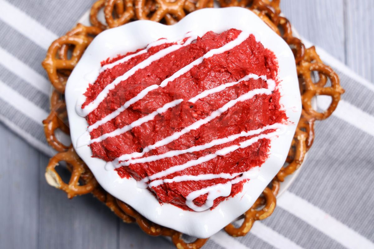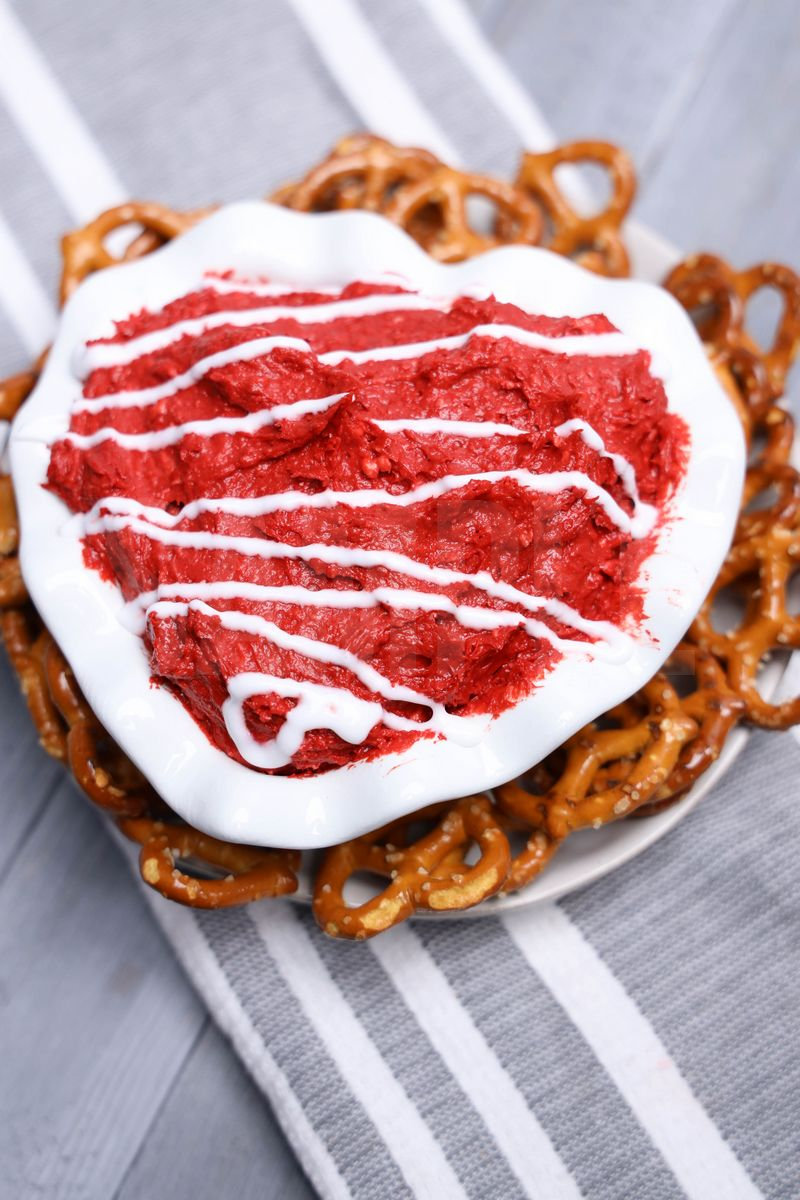 Red Velvet Dip is made with red velvet cake mix, cream cheese, powdered sugar, and cookie icing. This is a semi exclusive recipe. The Red Velvet Dip comes on a white heart bowl with a gray wood backdrop. Set comes with 6 in process (in process are the same for all sets) and 16 final shots (finals are different for each set) along with recipe in text format. Both vertical and horizontal shots are available for social media. One set of four. Sample removed on finals.