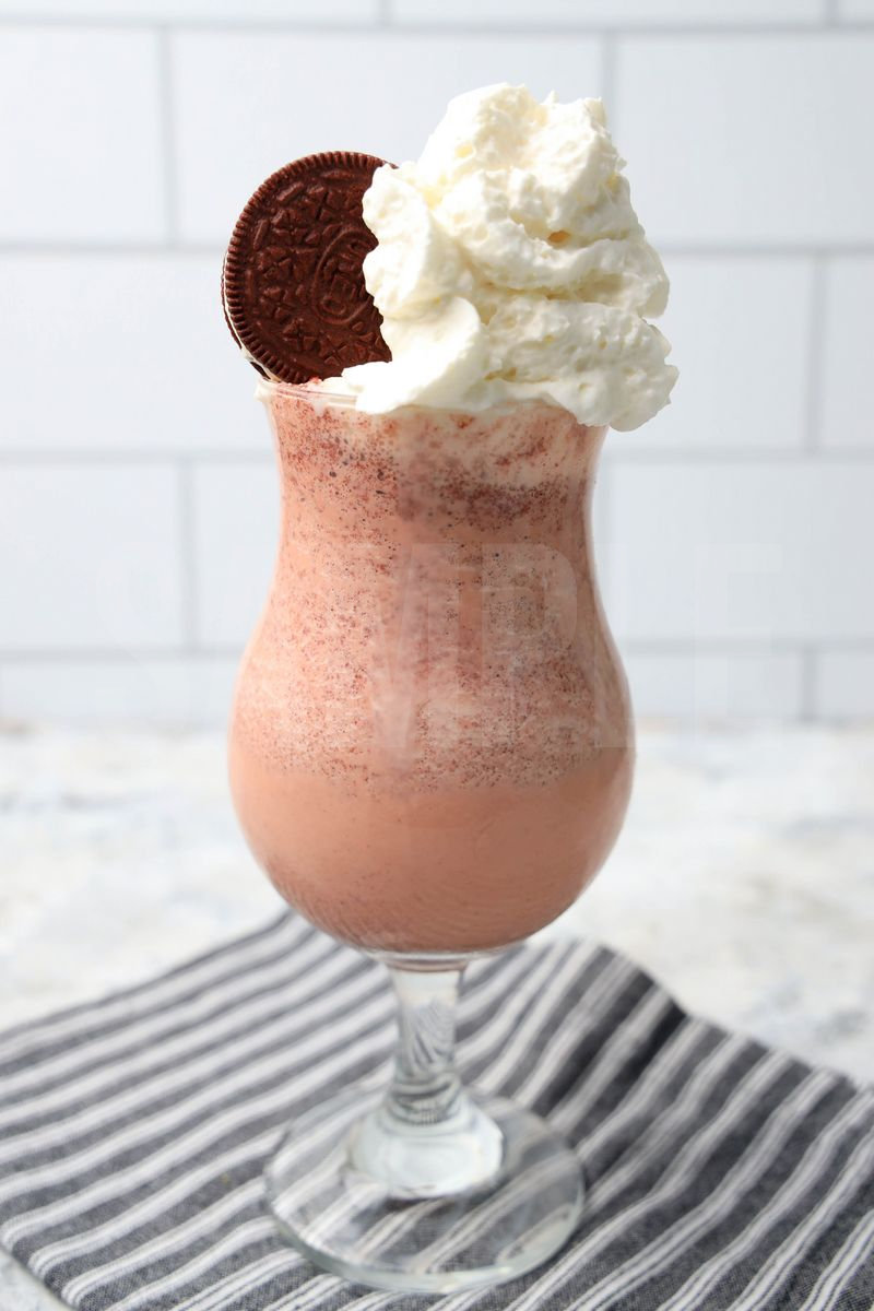 Red Velvet Oreo Milkshake is made with red velvet oreo cookies, vanilla ice cream, and milk. This is a semi exclusive recipe. The Red Velvet Oreo Milkshake comes in a glass with a gray striped napkin on a marble backdrop. Set comes with 9 in process (in process are the same for all sets) and 19 final shots (finals are different for each set) along with recipe in text format. Both vertical and horizontal shots are available for social media. One set of four. Sample removed on finals.