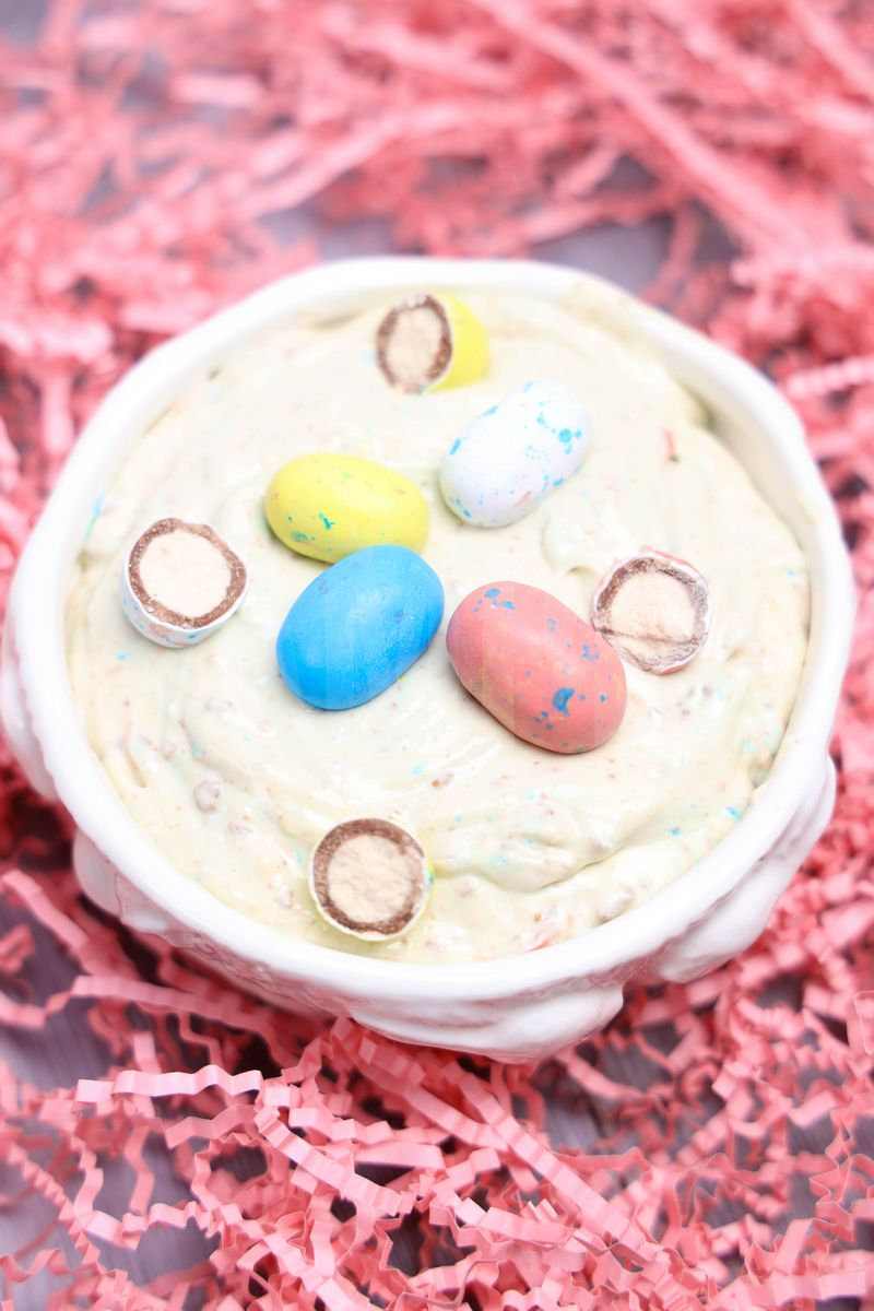 Robin Eggs Dip is made with whoppers robin eggs and no bake cheesecake filling. This is a semi exclusive recipe. The Robin Eggs Dip comes in a white bowl on a gray wood backdrop. Set comes with 10 in process (in process are the same for all sets) and 17 final shots (finals are different for each set) along with recipe in text format. Both vertical and horizontal shots are available for social media. One set of four. Sample removed on finals.