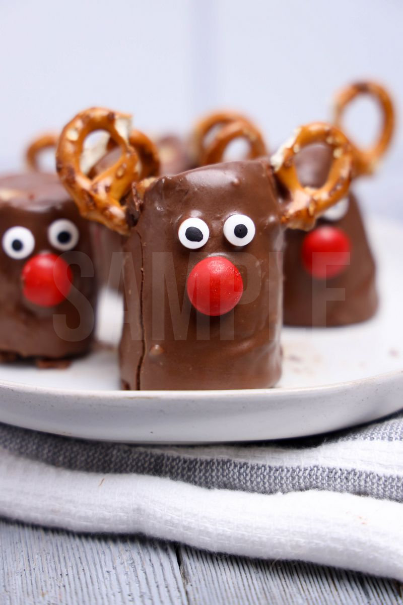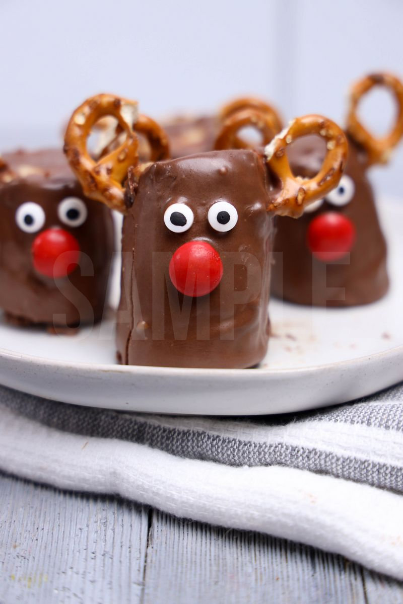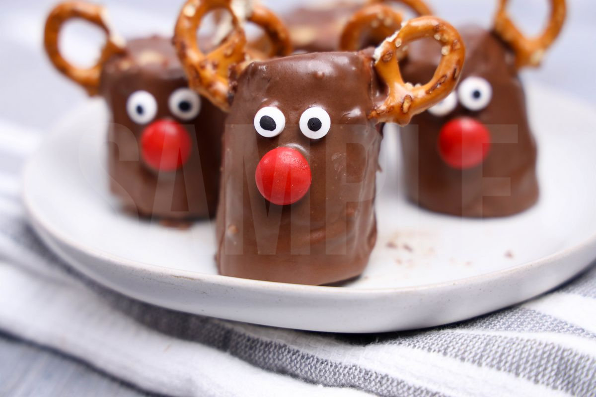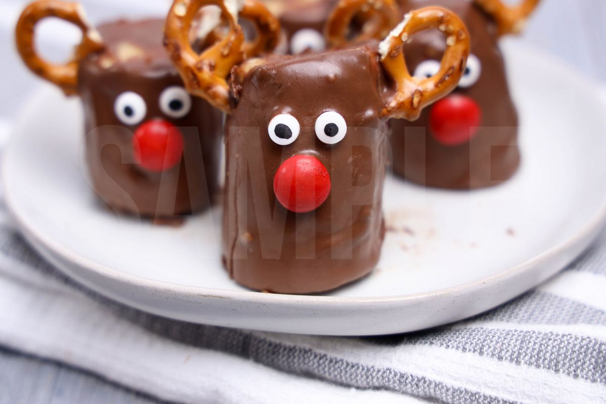 Rudolph Bananas is made with bananas, candy eyes, pretzels, chocolate, and M&M’s. This is a semi exclusive recipe. The Rudolph Bananas comes on a white plate with a gray wood backdrop. Set comes with 7 in process (in process are the same for all sets) and 19 final shots (finals are different for each set) along with recipe in text format. Both vertical and horizontal shots are available for social media. One set of four. Sample removed on finals.