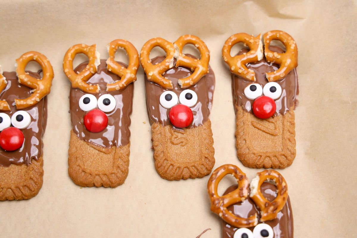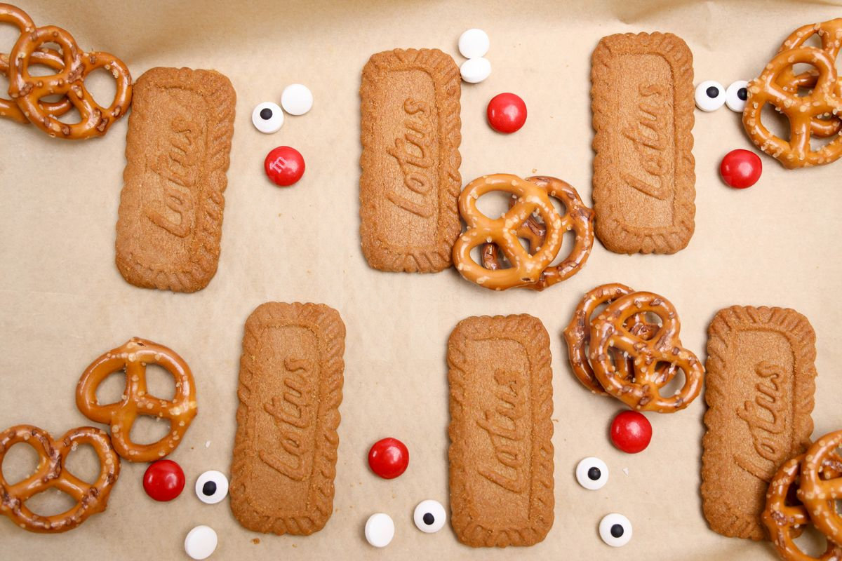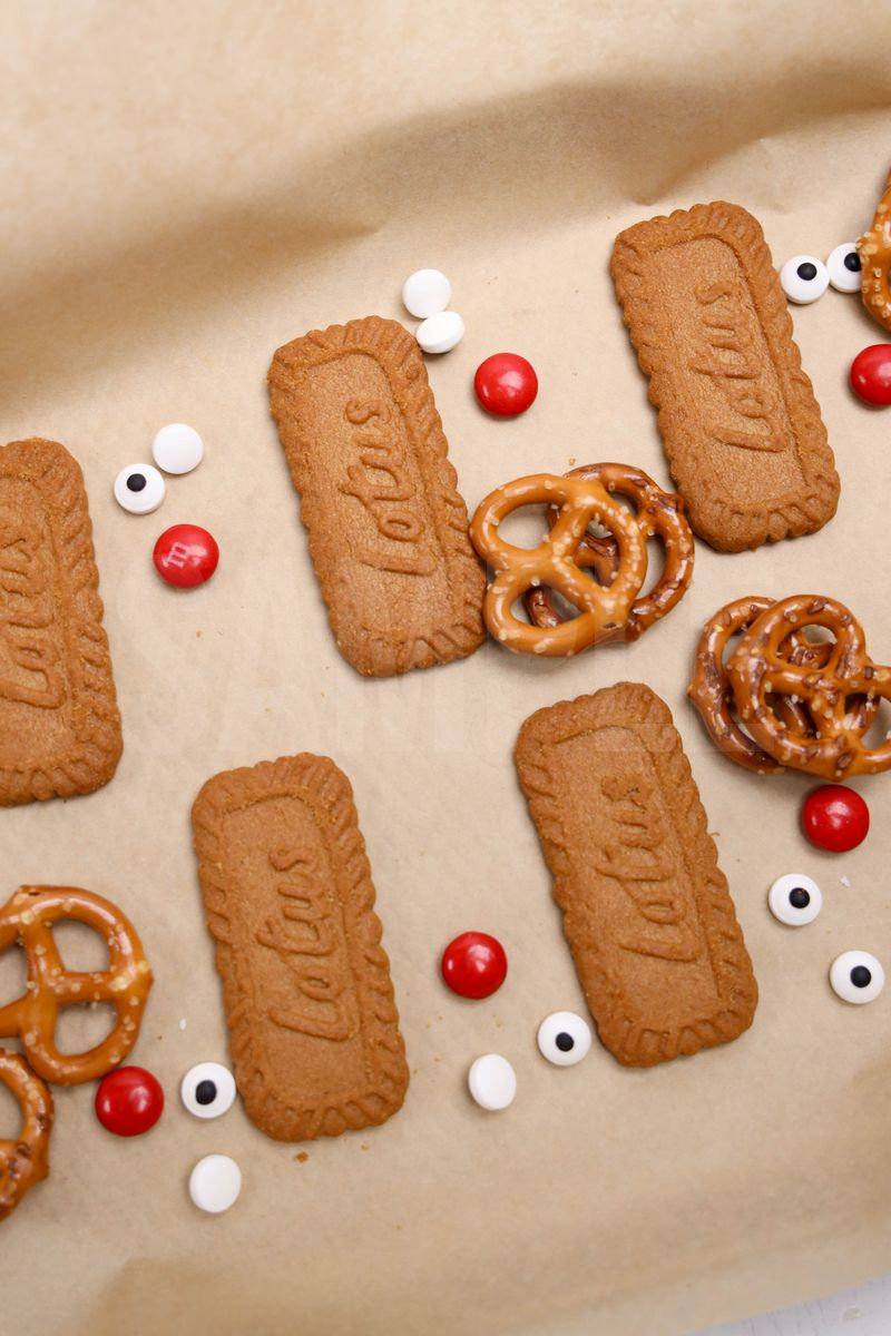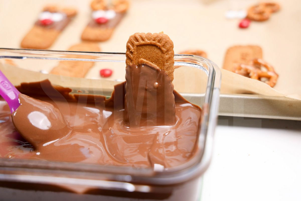 Rudolph Biscoff is made with biscoff cookies, Ghriradelli’s milk chocolate, M&M’s, pretzels, and candy eyes. This is a semi exclusive recipe. The Rudolph Biscoff comes on a white plate with a rustic wood backdrop. Set comes with 10 in process (in process are the same for all sets) and 17 final shots (finals are different for each set) along with recipe in text format. Both vertical and horizontal shots are available for social media. One set of four. Sample removed on finals.