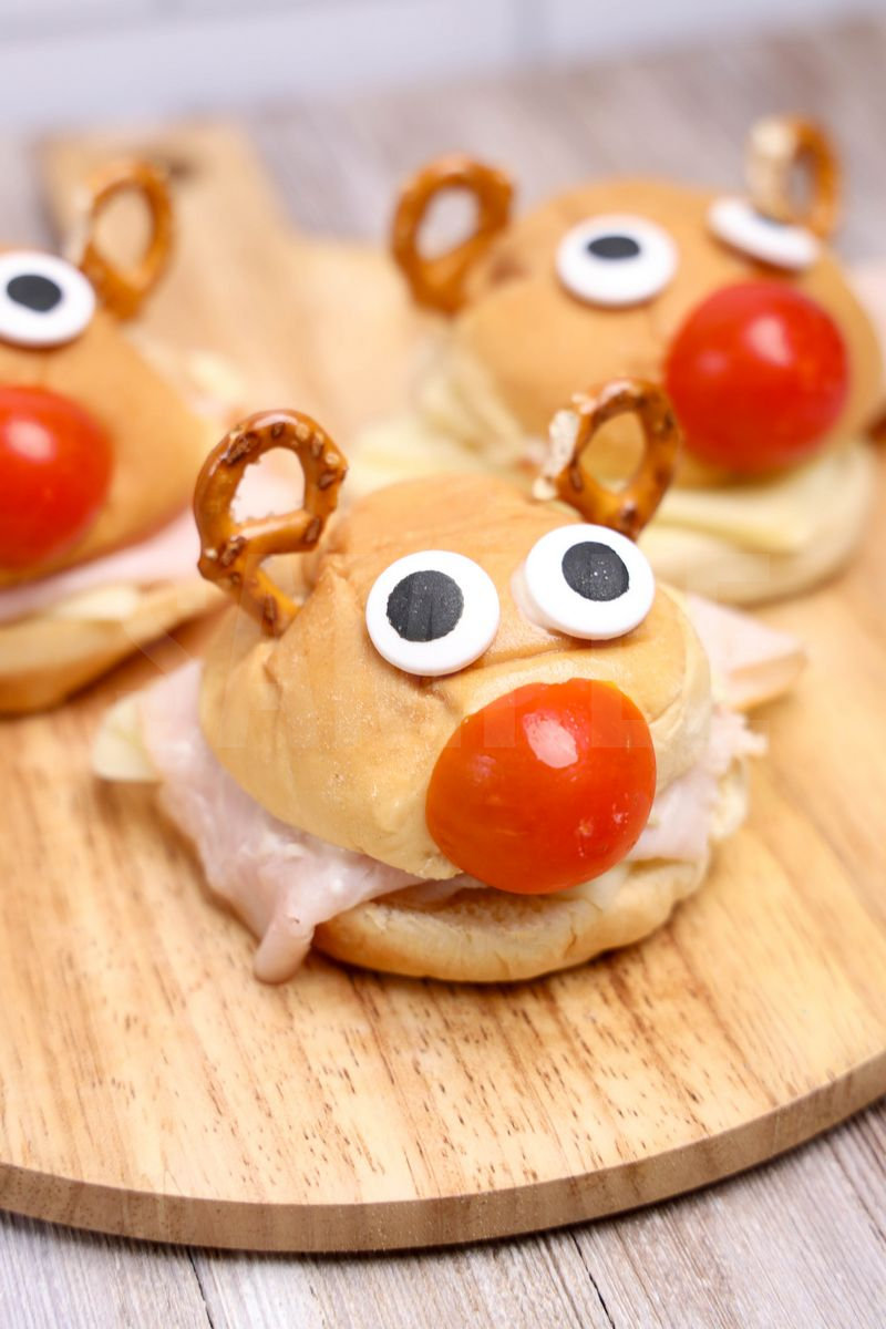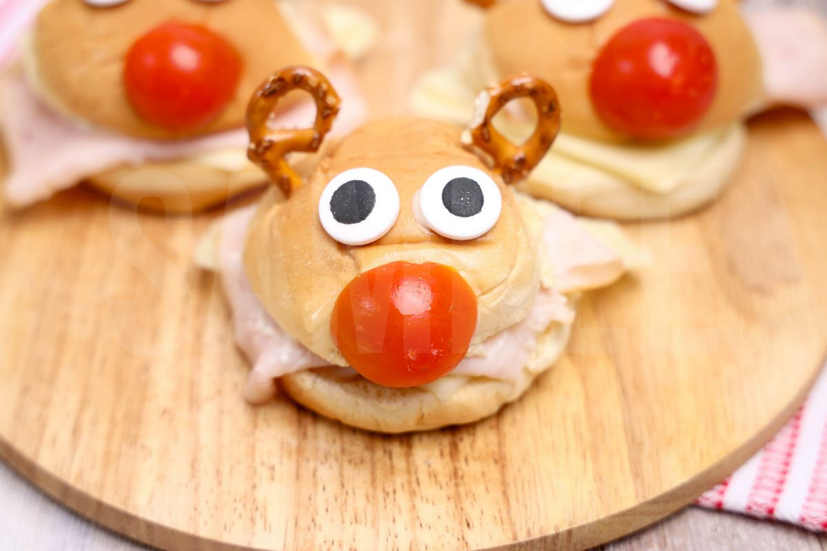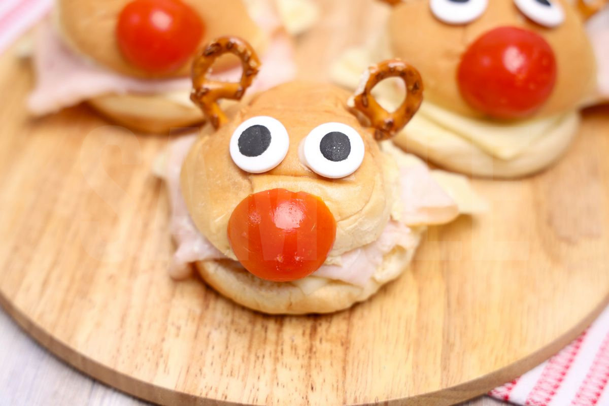 Rudolph Turkey Sliders is made with turkey, cheese, slider rolls, pretzels, candy eyes, and tomatoes. This is a semi exclusive recipe. The Rudolph Turkey Sliders comes on a white plate with a rustic wood backdrop. Set comes with 10 in process (in process are the same for all sets) and 16 final shots (finals are different for each set) along with recipe in text format. Both vertical and horizontal shots are available for social media. One set of four. Sample removed on finals.