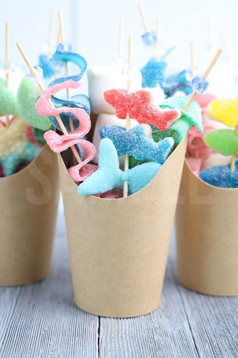 Sea Life Candy Cups is made with sour strips, under the sea gummies, star gummies, and marshmallows. This is a semi exclusive recipe. The Sea Life Candy Cups comes in a brown fry cup with gray wood backdrop. Set comes with 8 in process (in process are the same for all sets) and 18 final shots (finals are different for each set) along with recipe in text format. Both vertical and horizontal shots are available for social media. One set of four. Sample removed on finals.